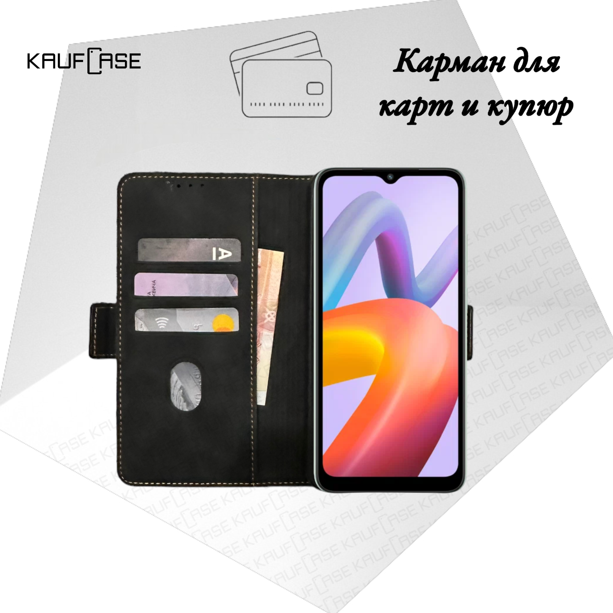 Купить Чехол книжка с карманом кошельком для вашего смартфона Xiaomi Redmi Note 13 Pro 4G/ Poco M6 Pro (6.67"), черный. Матовая текстура под кожу, дополнительный карман на крышке чехла, отделения для карт и купюр