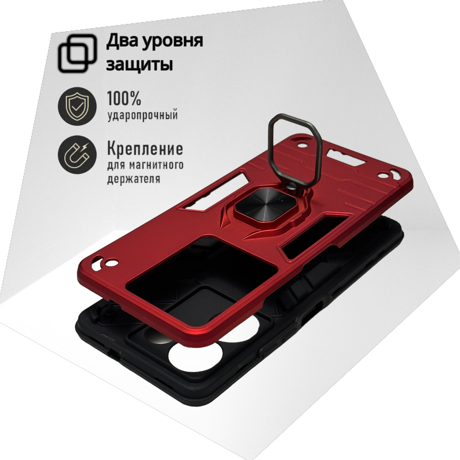 СохранитьПротивоударный чехол на Xiaomi Redmi Note 13 Pro 4G/ Poco M6 Pro (6.67"), красный. Кольцо-держатель и магнитное крепление, яркие пластиковые защитные вставки интересное: