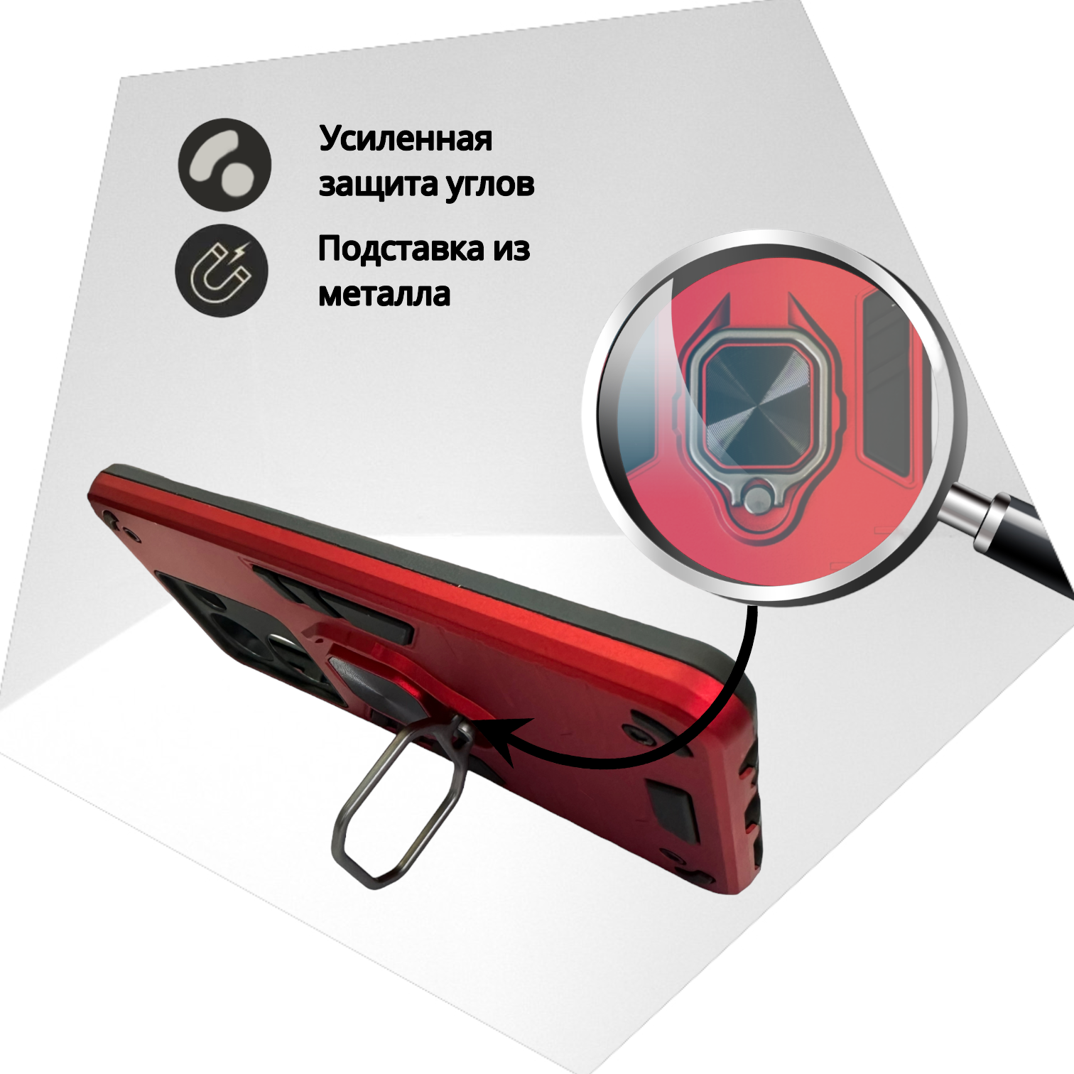 Купить Противоударный чехол на Xiaomi Redmi Note 13 Pro 4G/ Poco M6 Pro (6.67"), красный. Кольцо-держатель и магнитное крепление, яркие пластиковые защитные вставки