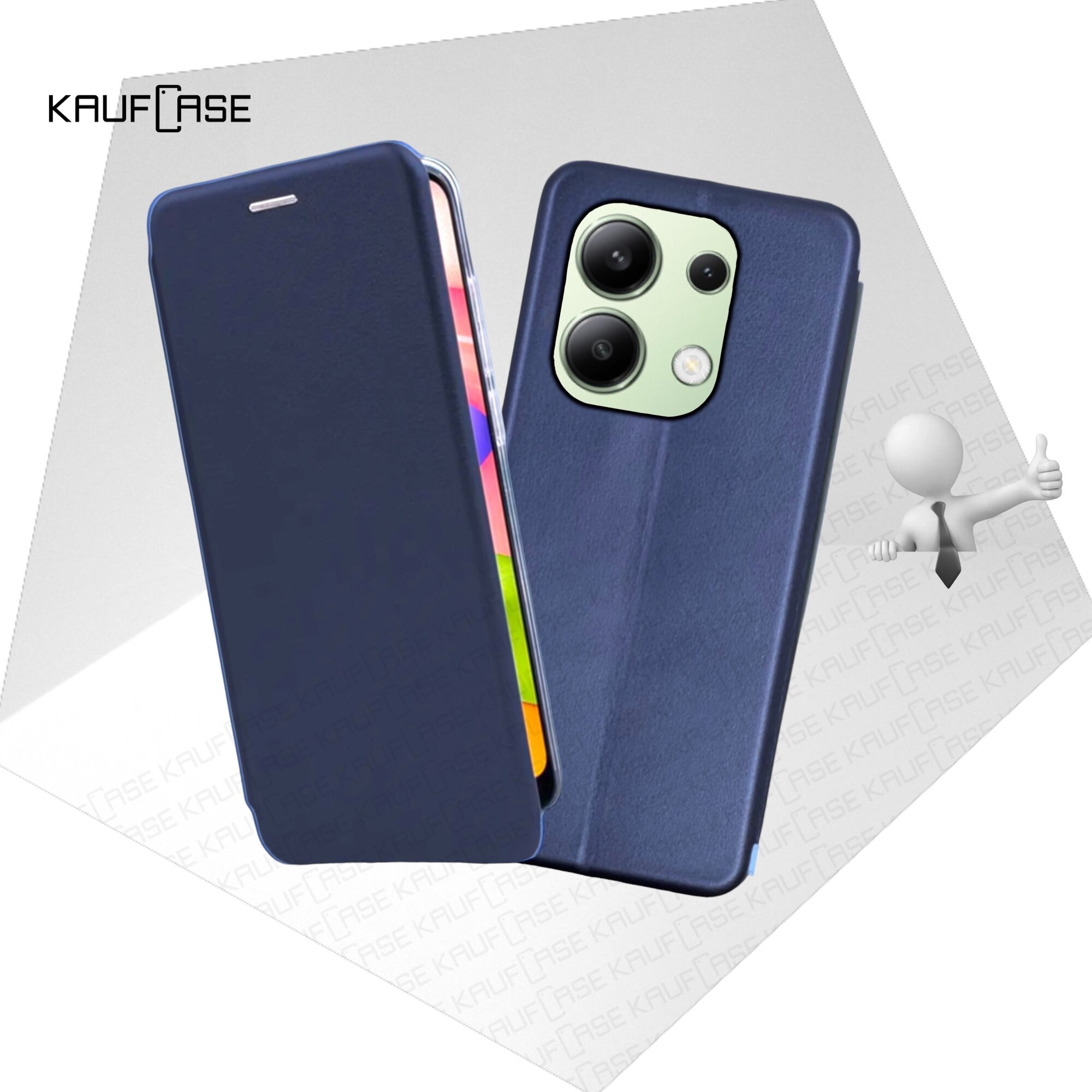 Тонкий и противоударный чехол-книжка Xiaomi Redmi Note 13 Pro 4G/ Poco M6 Pro (6.67"), темно-синий. Текстура под кожу; Вырез под динамик; Карман для карты