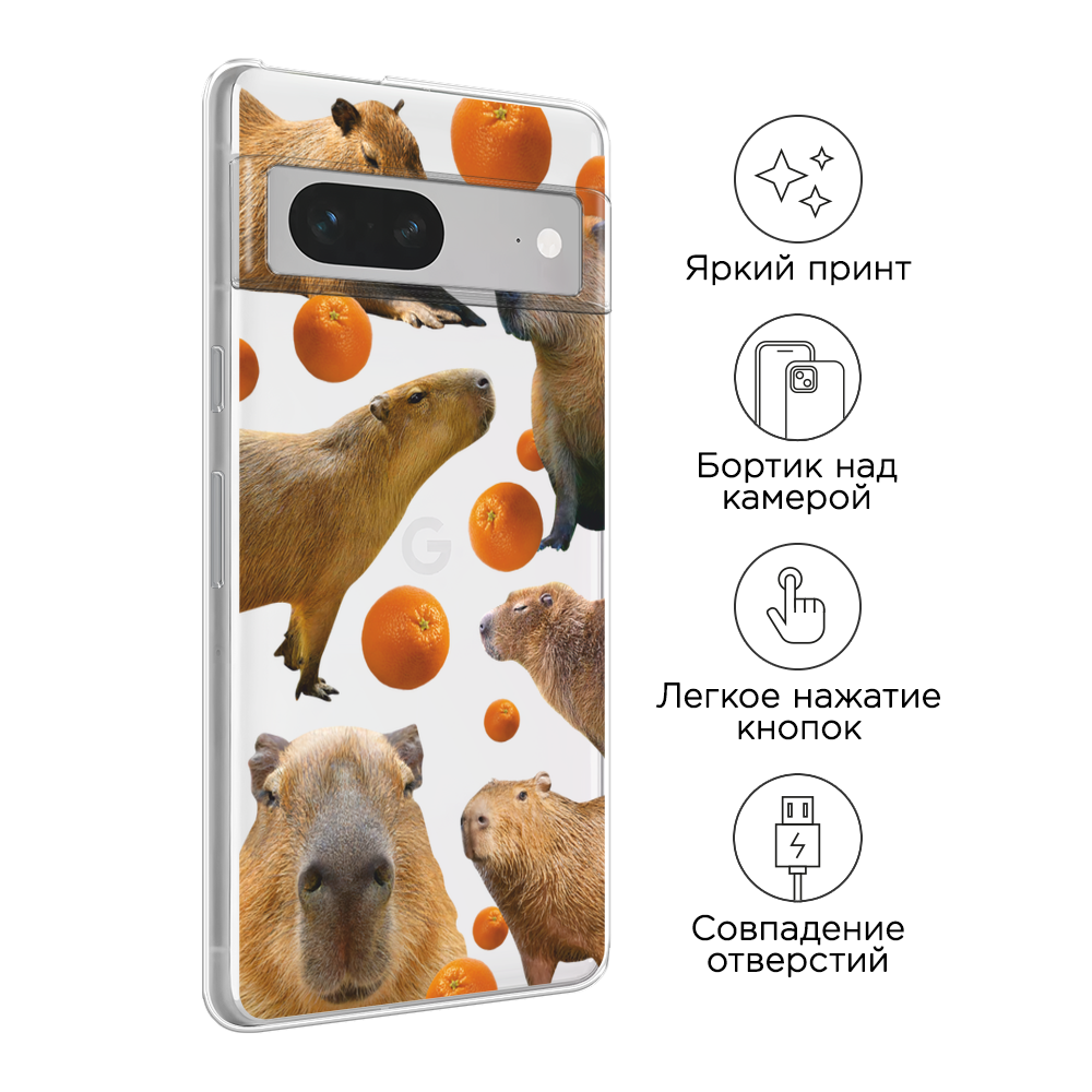 СохранитьЧехол на Google Pixel 7 / Гугл Пиксель 7 с принтом Капибара и апельсины, прозрачный интересное: