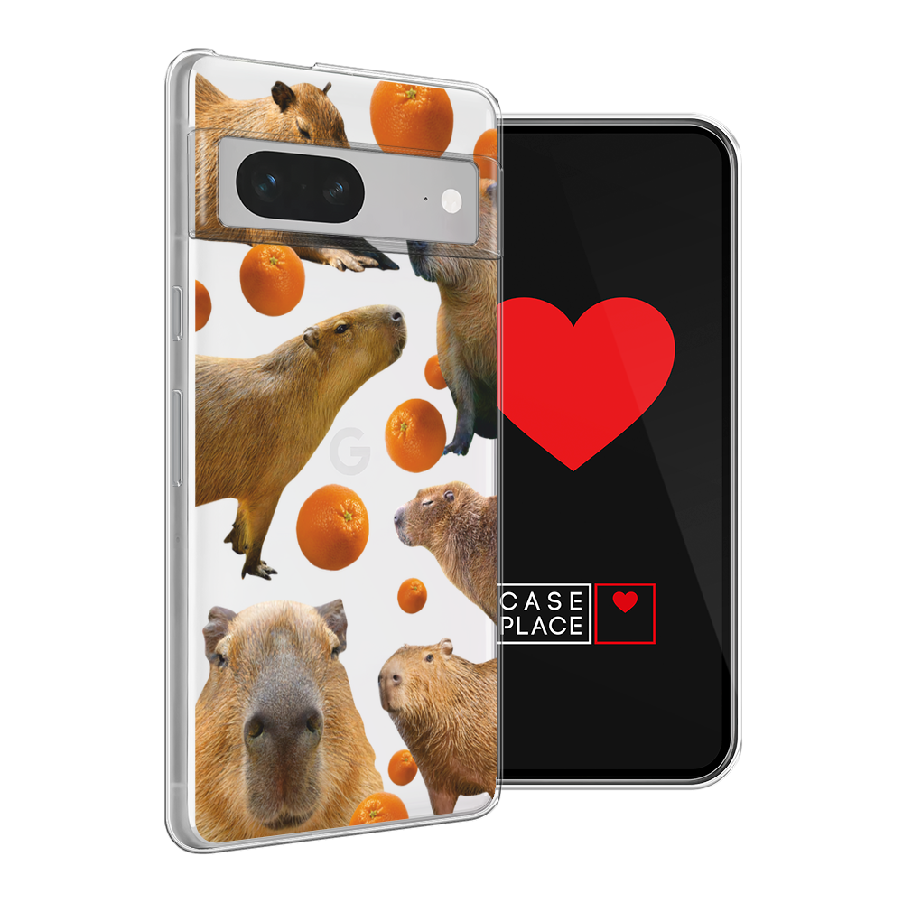 Купить Чехол на Google Pixel 7 / Гугл Пиксель 7 с принтом Капибара и апельсины, прозрачный