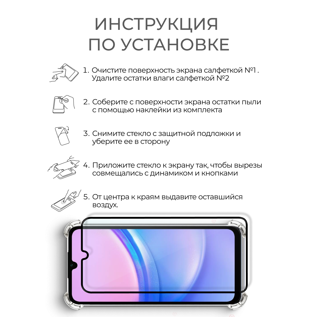 Купить Комплект 2 в 1: Чехол №03 + стекло для Samsung Galaxy A15 противоударный силиконовый прозрачный клип-кейс с защитой камеры и углов на Самсунг Гэлакси А15
