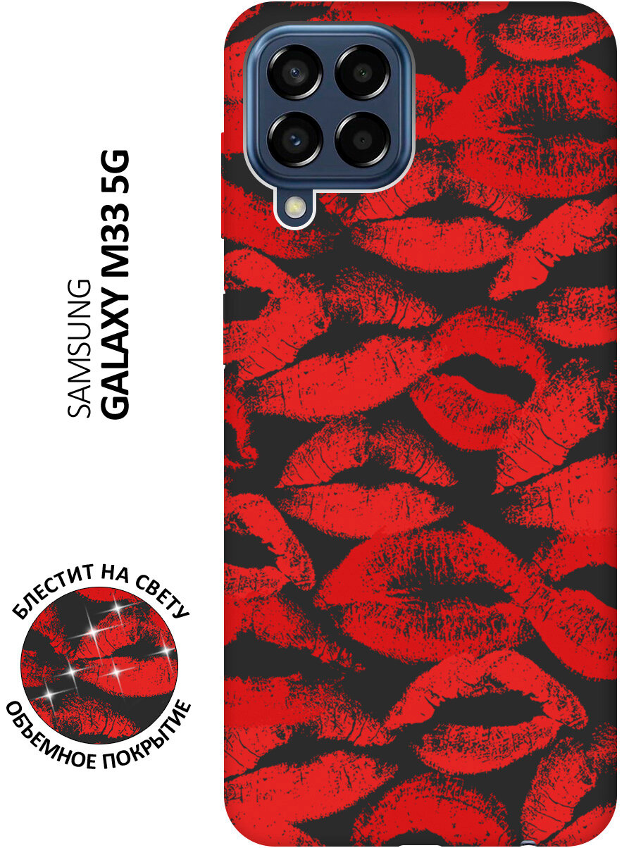 Купить Матовый Soft Touch силиконовый чехол на Samsung Galaxy M33 5G / Самсунг М33 5г с 3D принтом "Kiss" черный
