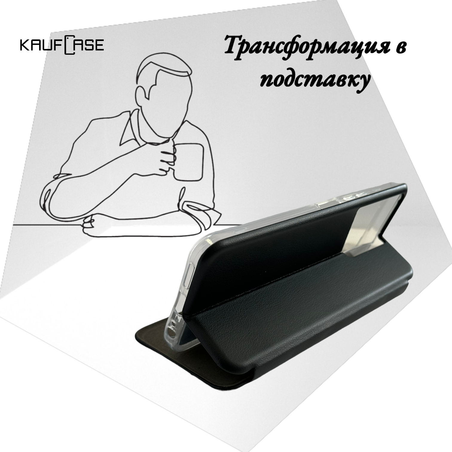 Чехол книжка с карманом кошельком для вашего смартфона Tecno Spark 20 Pro (6.78"), черный. Матовая текстура под кожу, дополнительный карман на крышке чехла, отделения для карт и купюр