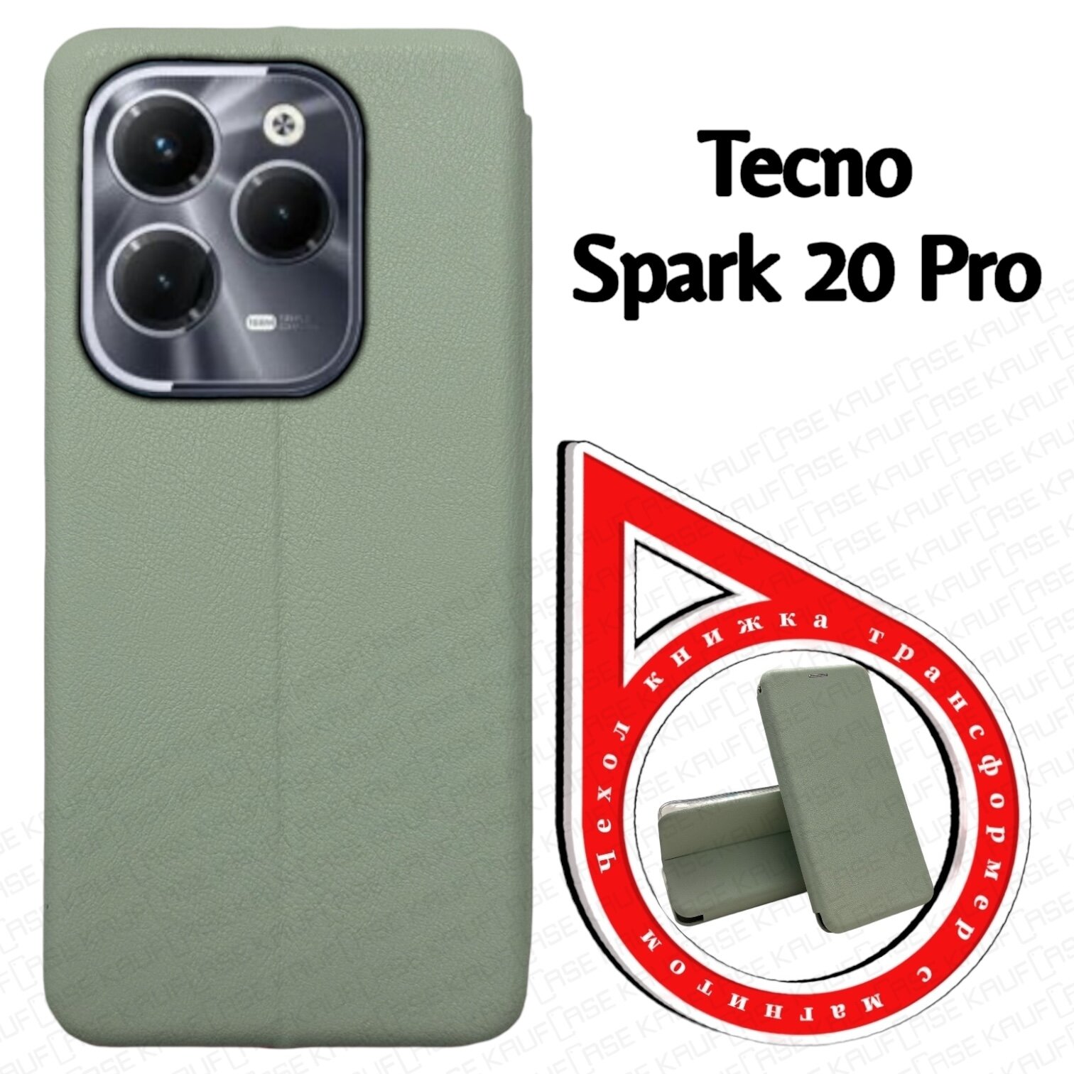 Чехол книжка для телефона Tecno Spark 20 Pro (6.78"), фисташковый. Текстура под кожу