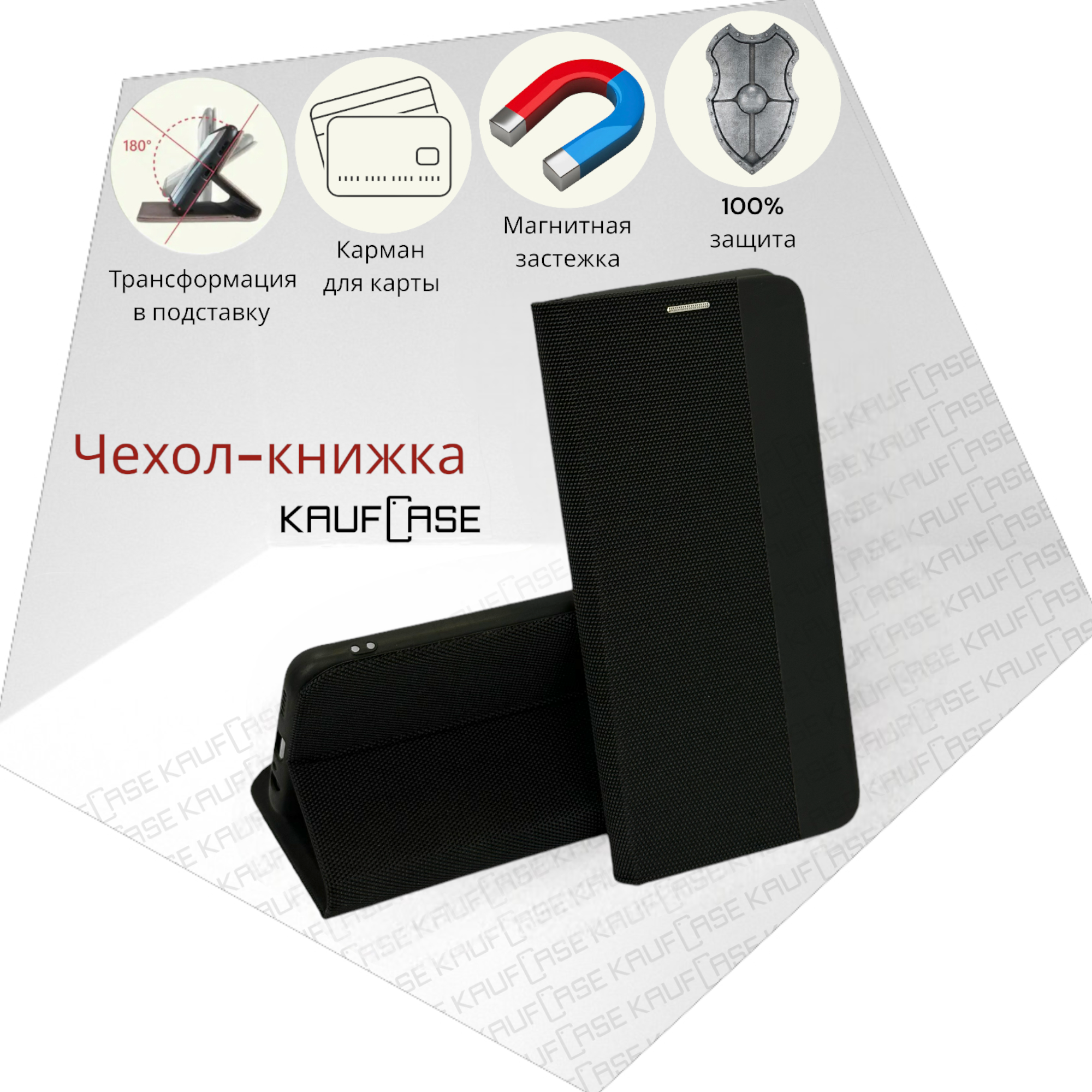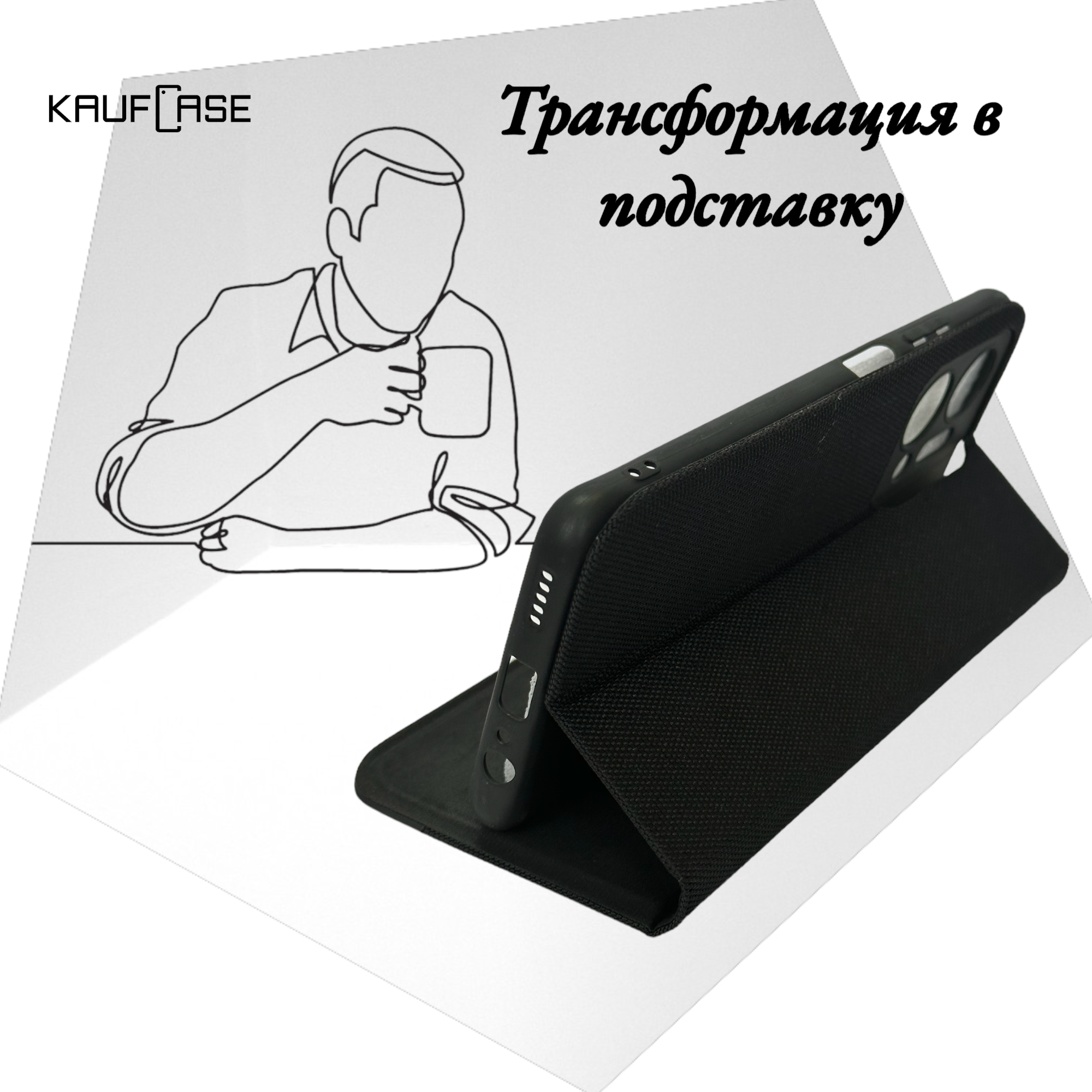 Чехол книжка с карманом кошельком для вашего смартфона Tecno Spark 20 Pro (6.78"), черный. Матовая текстура под кожу, дополнительный карман на крышке чехла, отделения для карт и купюр