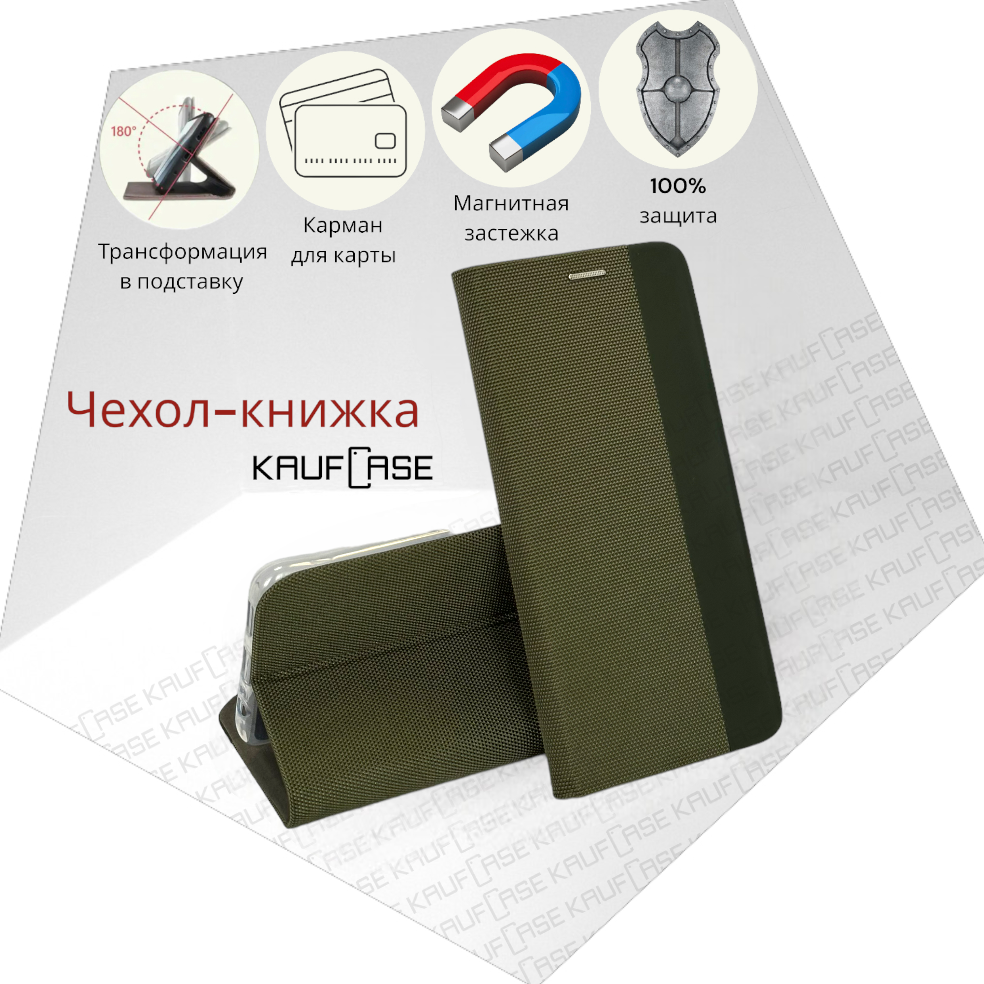 СохранитьЧехол книжка для телефона Tecno Spark 20 Pro (6.78"), хаки. Плетеная структура интересное: