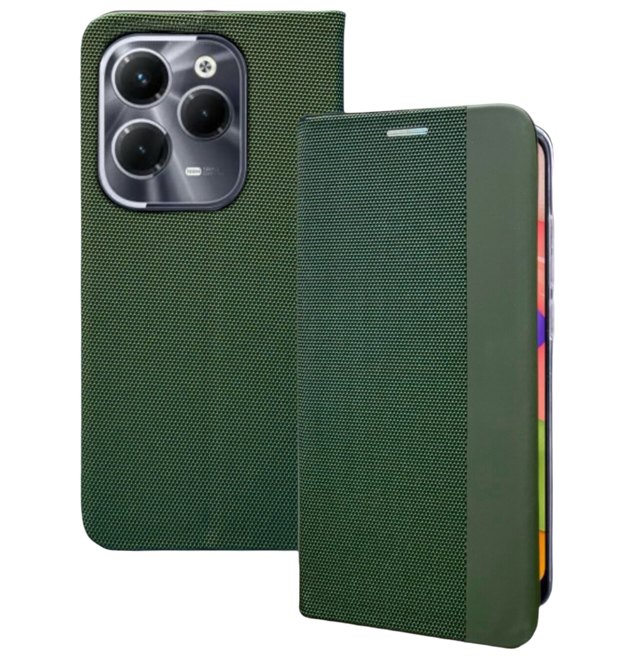 Тонкий и противоударный чехол-книжка Tecno Spark 20 Pro (6.78"), темно-зеленый. Текстура под кожу; Вырез под динамик; Карман для карты