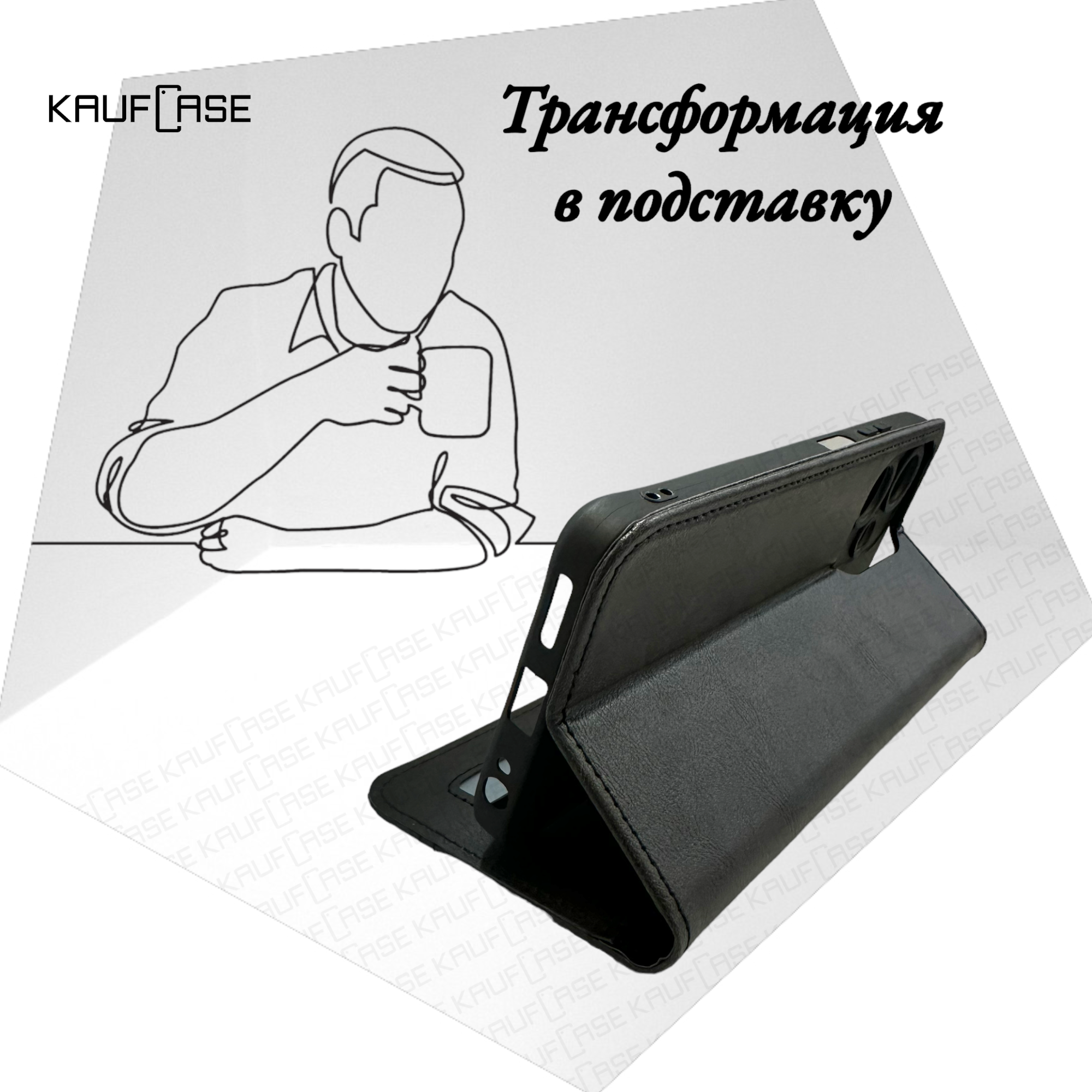 Чехол книжка с карманом кошельком для вашего смартфона Tecno Spark 20 Pro (6.78"), черный. Матовая текстура под кожу, дополнительный карман на крышке чехла, отделения для карт и купюр