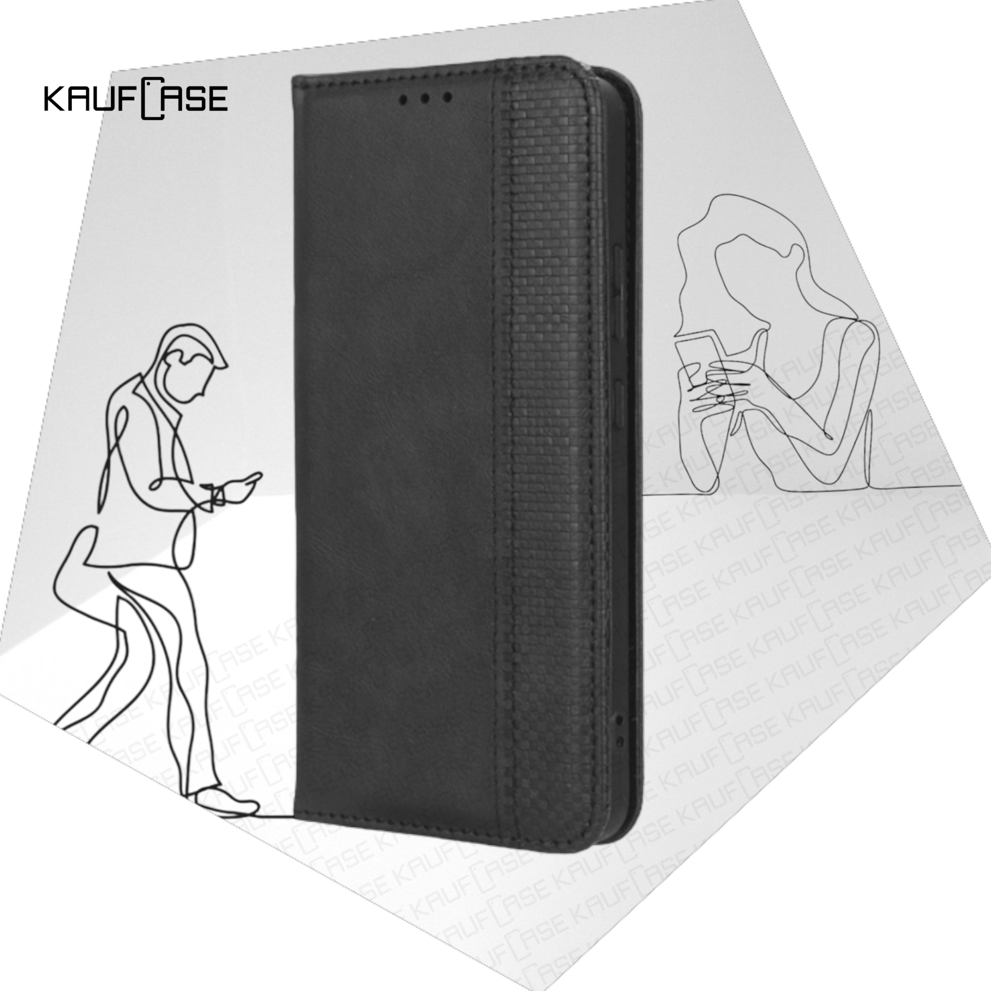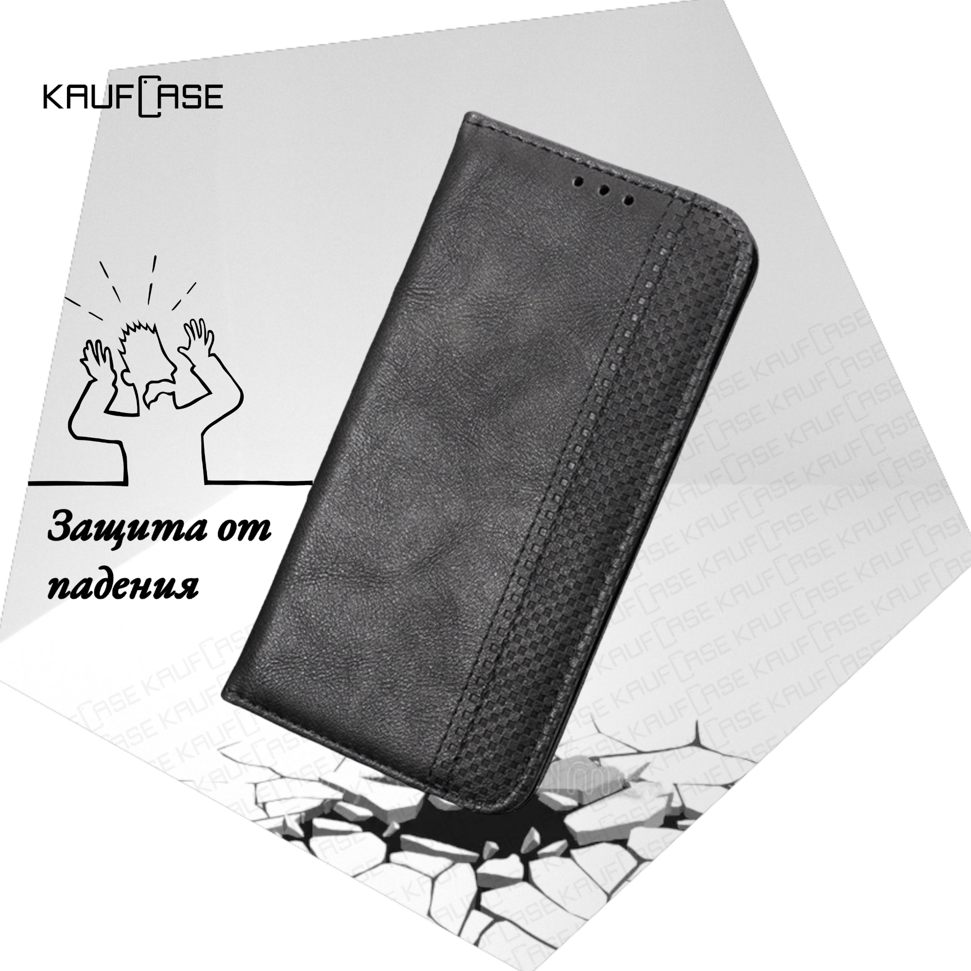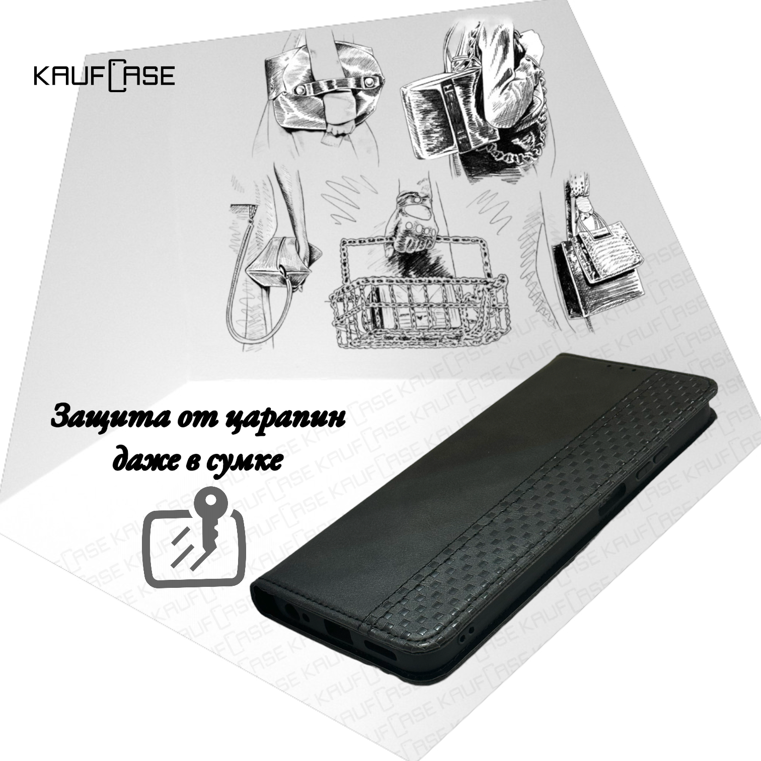 Чехол книжка для телефона Tecno Spark 20 Pro (6.78"), черный. Текстура под кожу