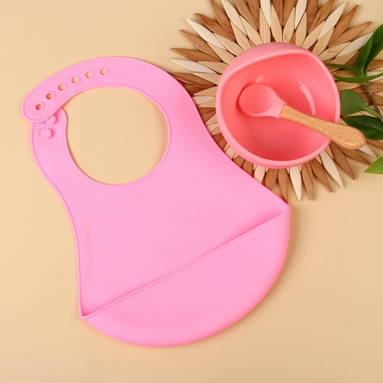 Нагрудник силиконовый с карманом, цвет розовый 5491977