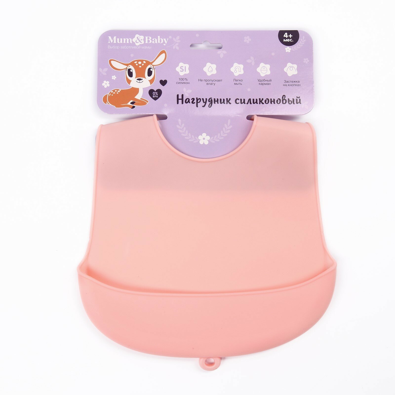 Mum&Baby Нагрудник для кормления «Мишка на севере» силиконовый с карманом, цвет розовый