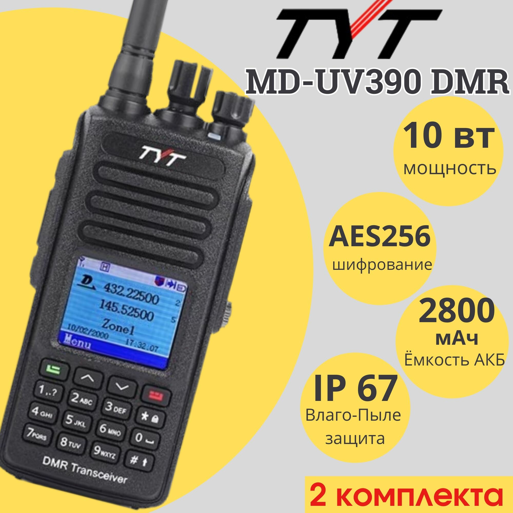 Купить Радиостанция TYT MD-UV390 DMR, AES-256, 10W, портативная рация, 2 комплекта