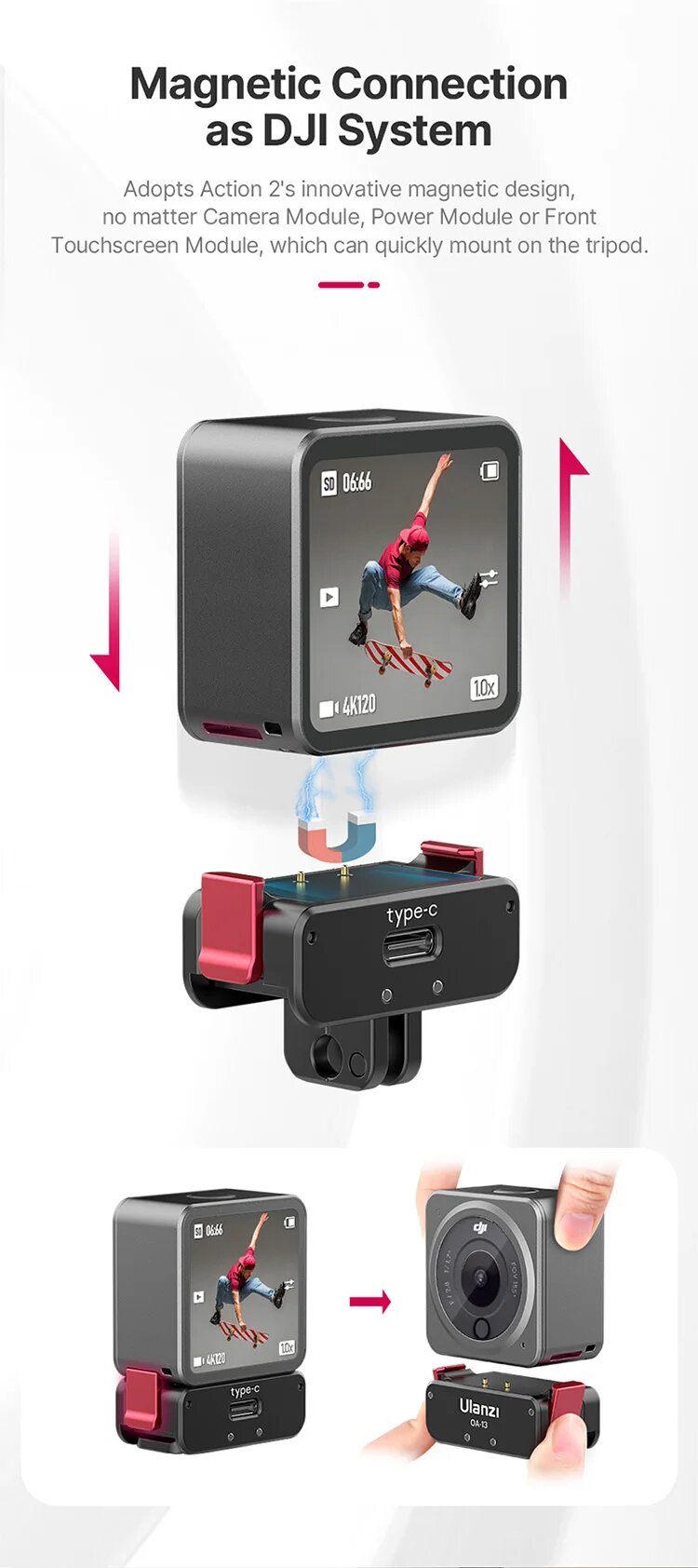Магнитный блок питания для DJI Action 2, OA-11 интересное: