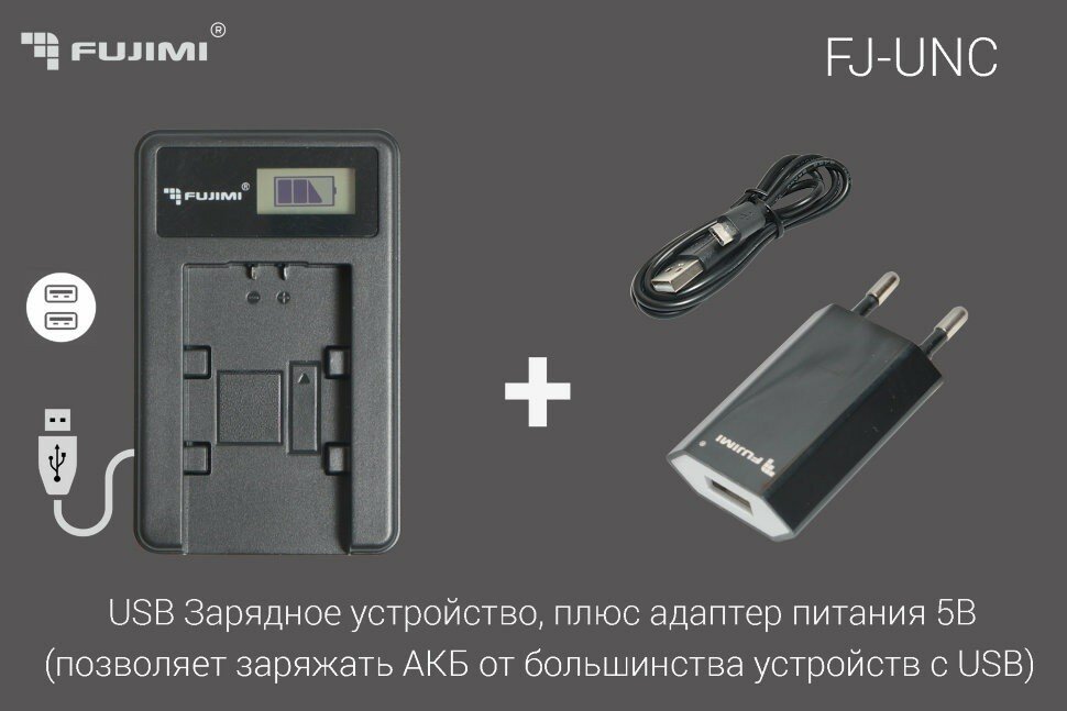 Зарядное устройство Fujimi FJ-UNC-FZ100 (для A7 lll, A7R lll, A9) + Адаптер питания USB мощностью 5 Вт