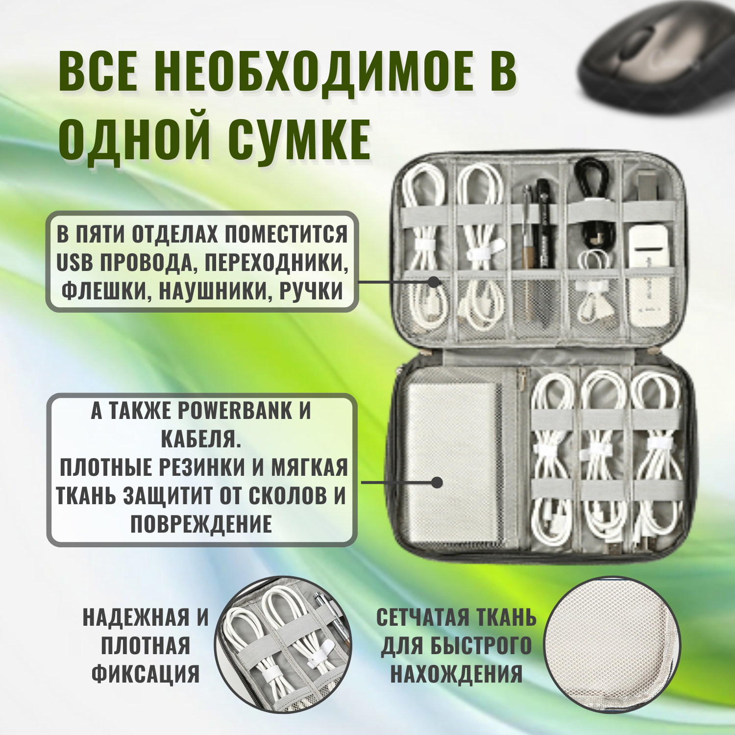 Ниже Вы можете прочитать отзывы на Органайзер для хранения проводов, зарядок, кабелей, аксессуаров. Сумка для внешнего аккумулятора., ознакомится с подробными характеристиками, посмотреть интересные обзоры и фотографии на Органайзер для хранения проводов, зарядок, кабелей, аксессуаров. Сумка для внешнего аккумулятора..