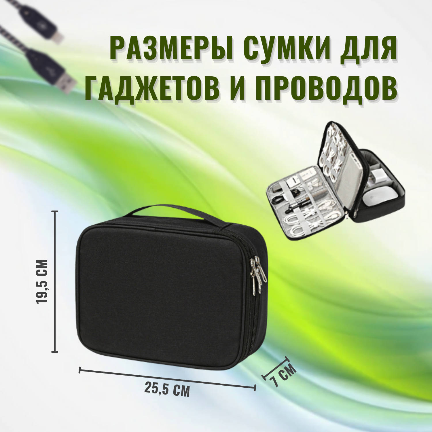Органайзер для хранения проводов, зарядок, кабелей, аксессуаров. Сумка для внешнего аккумулятора. интересное: