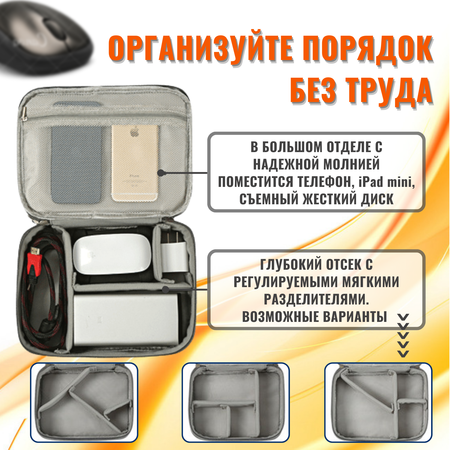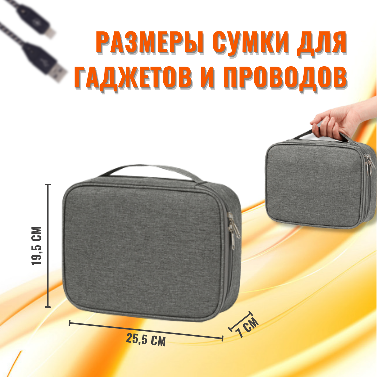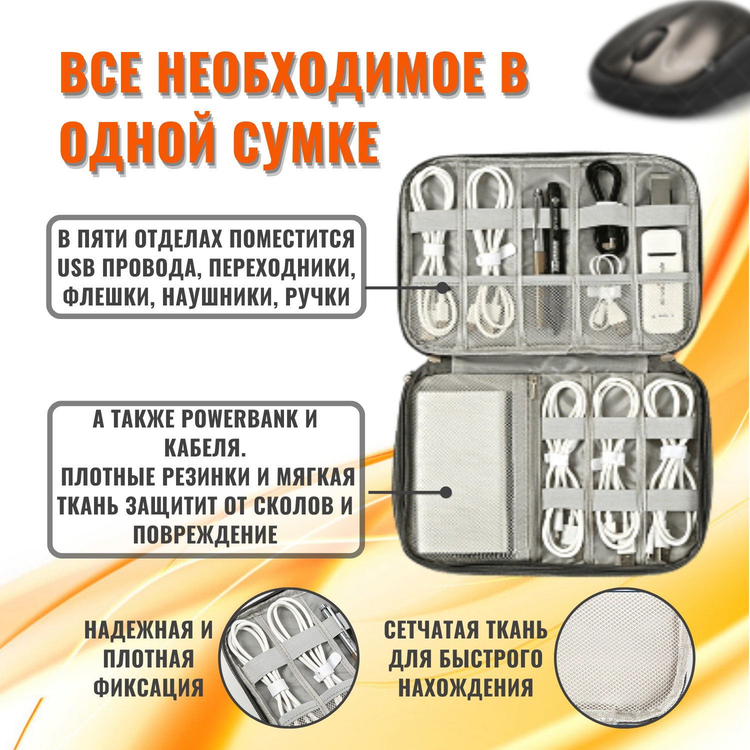 Органайзер для хранения проводов, зарядок, кабелей, аксессуаров. Сумка для внешнего аккумулятора.