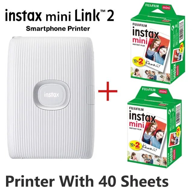 Fujifilm Instax Mini Link 2 принтер для смартфона, White With 40 Sheets