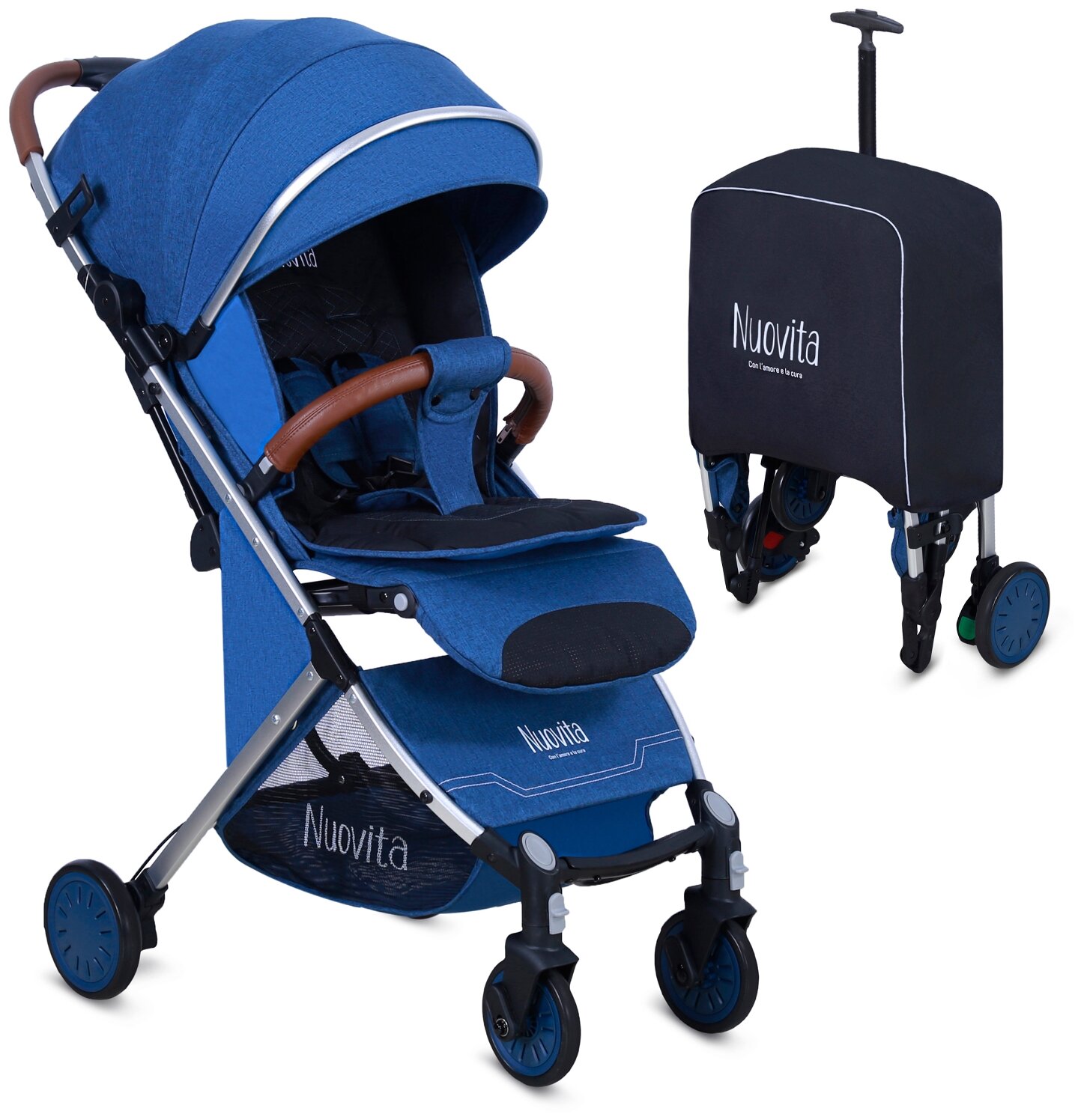 Прогулочная коляска Nuovita Giro Lux (Blu, Argento / Синий, Серебряный)