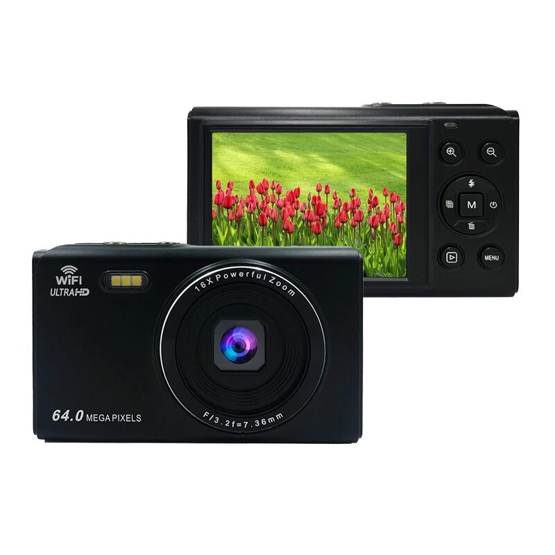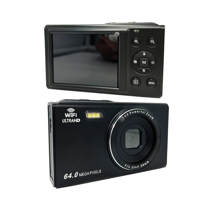 Купить Цифровая камера 4K 64 мп, HD экран 2,8 дюйма, 16-кратный зум, фотокамера для фото-и видеосъемки, 4K digital camera, 4K digital camera