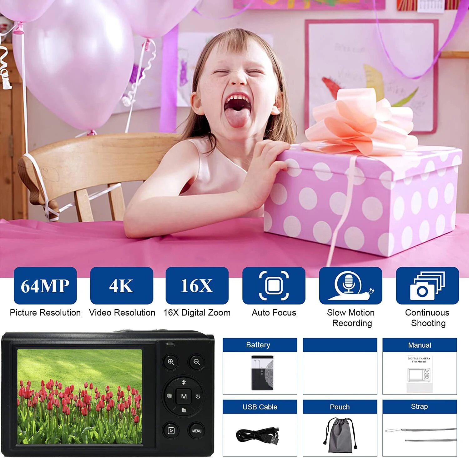 Цифровая камера 4K 64 мп, HD экран 2,8 дюйма, 16-кратный зум, фотокамера для фото-и видеосъемки, 4K digital camera, 4K digital camera интересное: