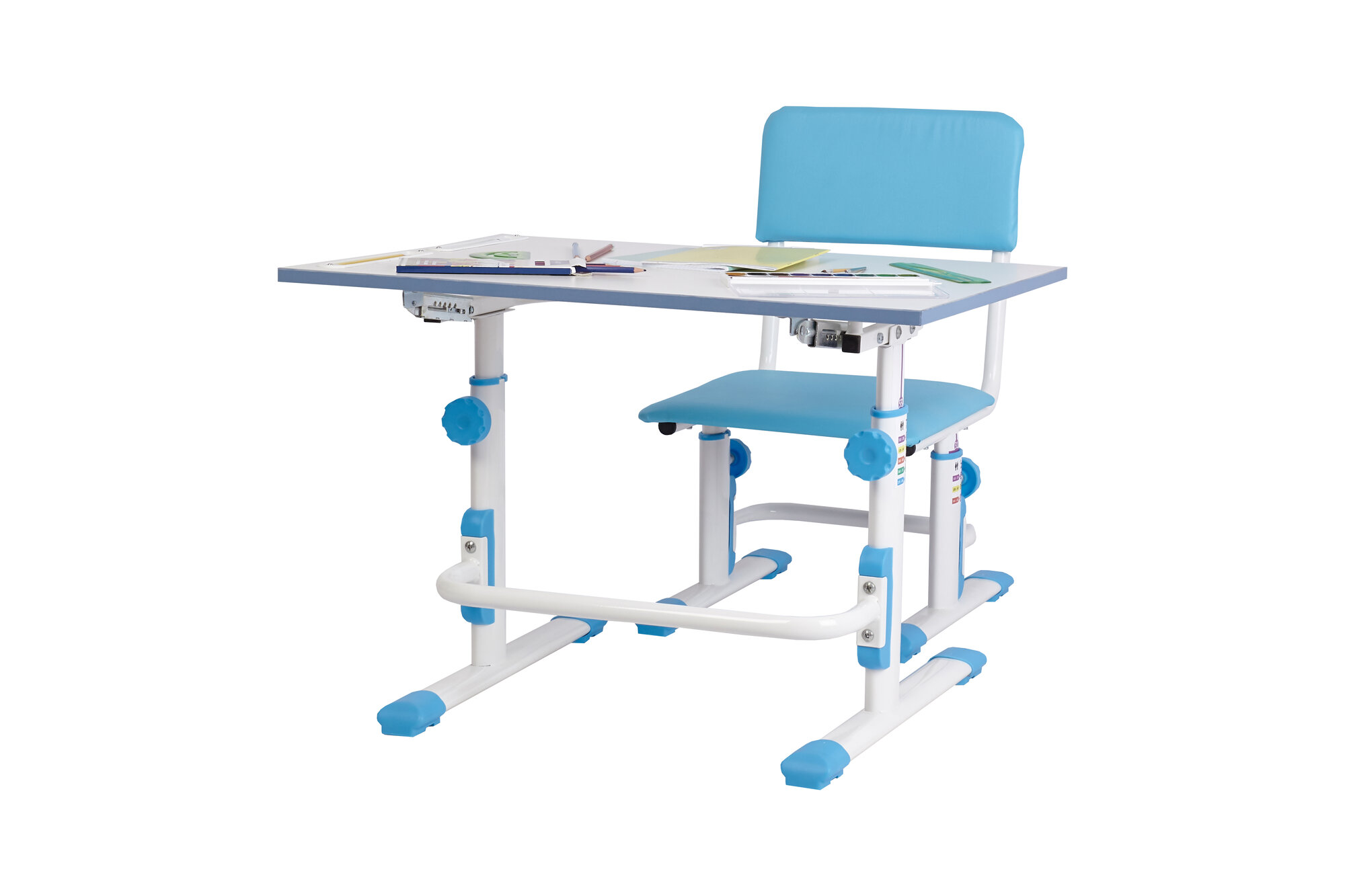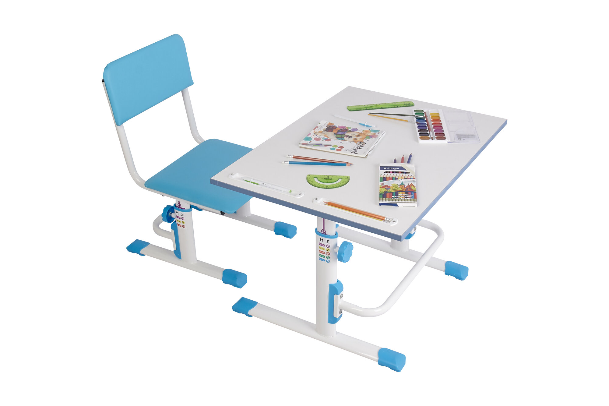 Купить Комплект Polini Kids парта-трансформер M1 и стул регулируемый L 75x55 см белый/синий