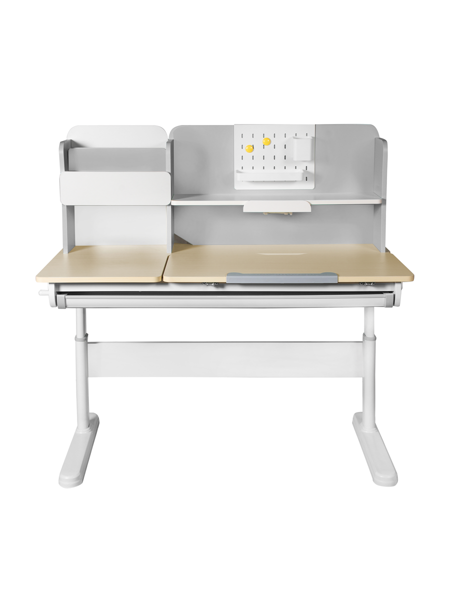 Растущая парта для школьника Rumbik Smart серая, детский деревянный письменный стол с регулировкой высоты