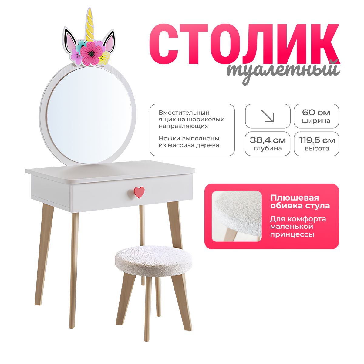 Детский туалетный столик Единорожка интересное: