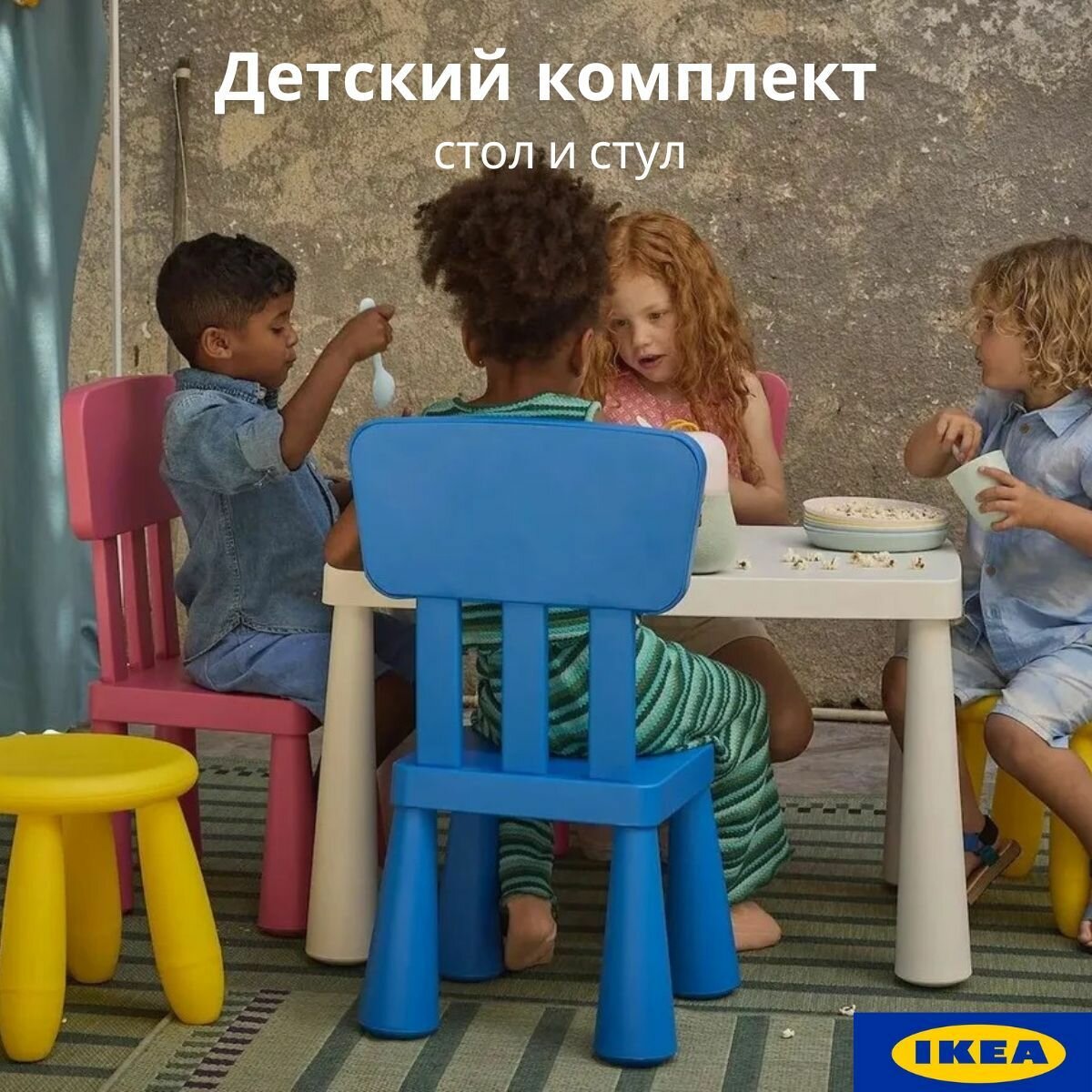 СохранитьДетский стол и стул икеа маммут, комплект белый стол (77х55) и синий стул. интересное: