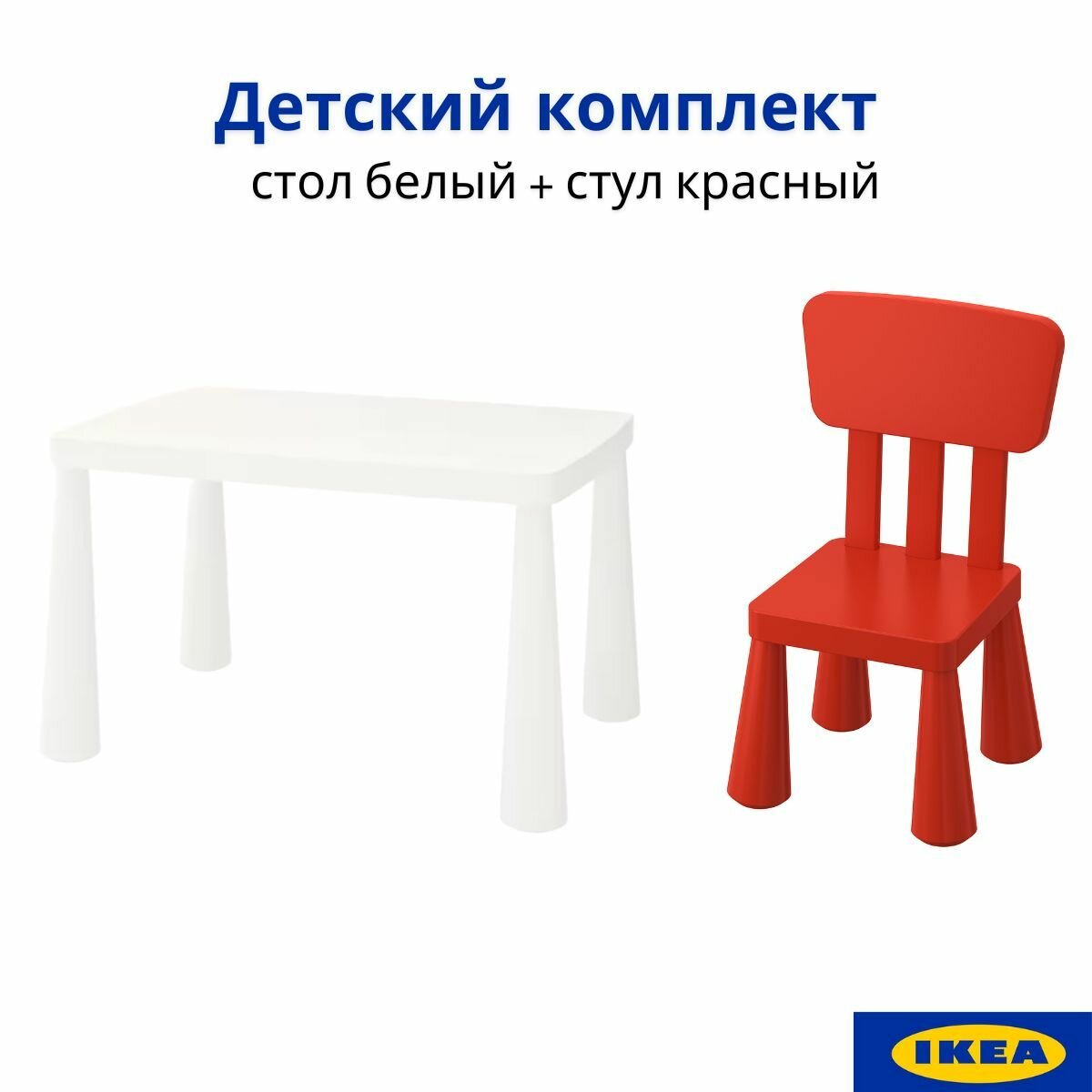 | Комплектация | Детский комплект 1 стол (красный) и 1 стул (красный). Подлинная продукция ИКЕА. |
