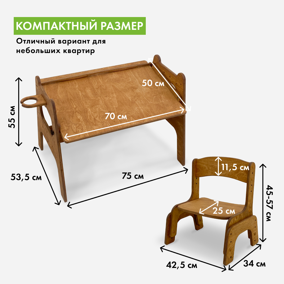 Стол детский Малышок и растущий стул, без покрытия