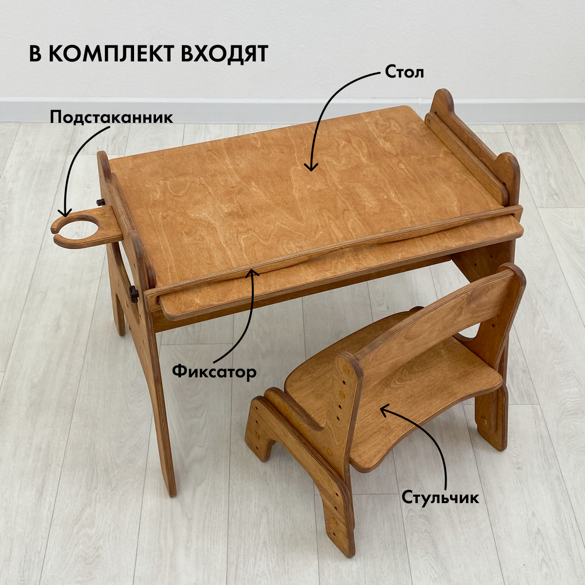 Стол детский Малышок и растущий стул, прозрачное масло