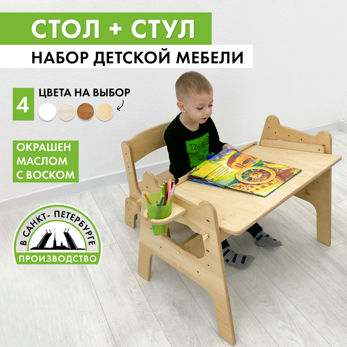СохранитьСтол детский Малышок и растущий стул, прозрачное масло интересное: