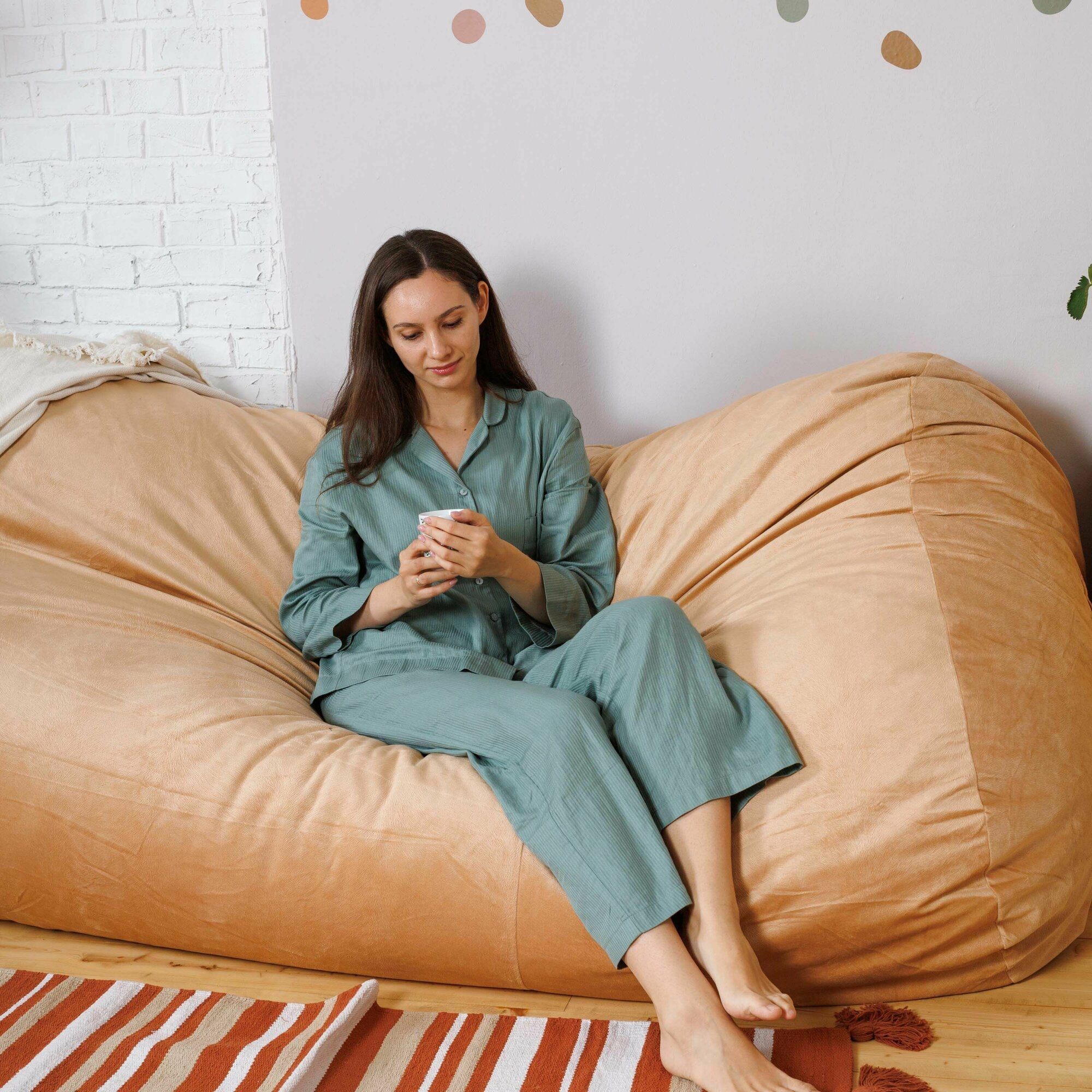 СохранитьКресло мешок Bubble Bag XXXL в форме валика 210х120х70 бескаркасное велюр с тиснением Песочный интересное: