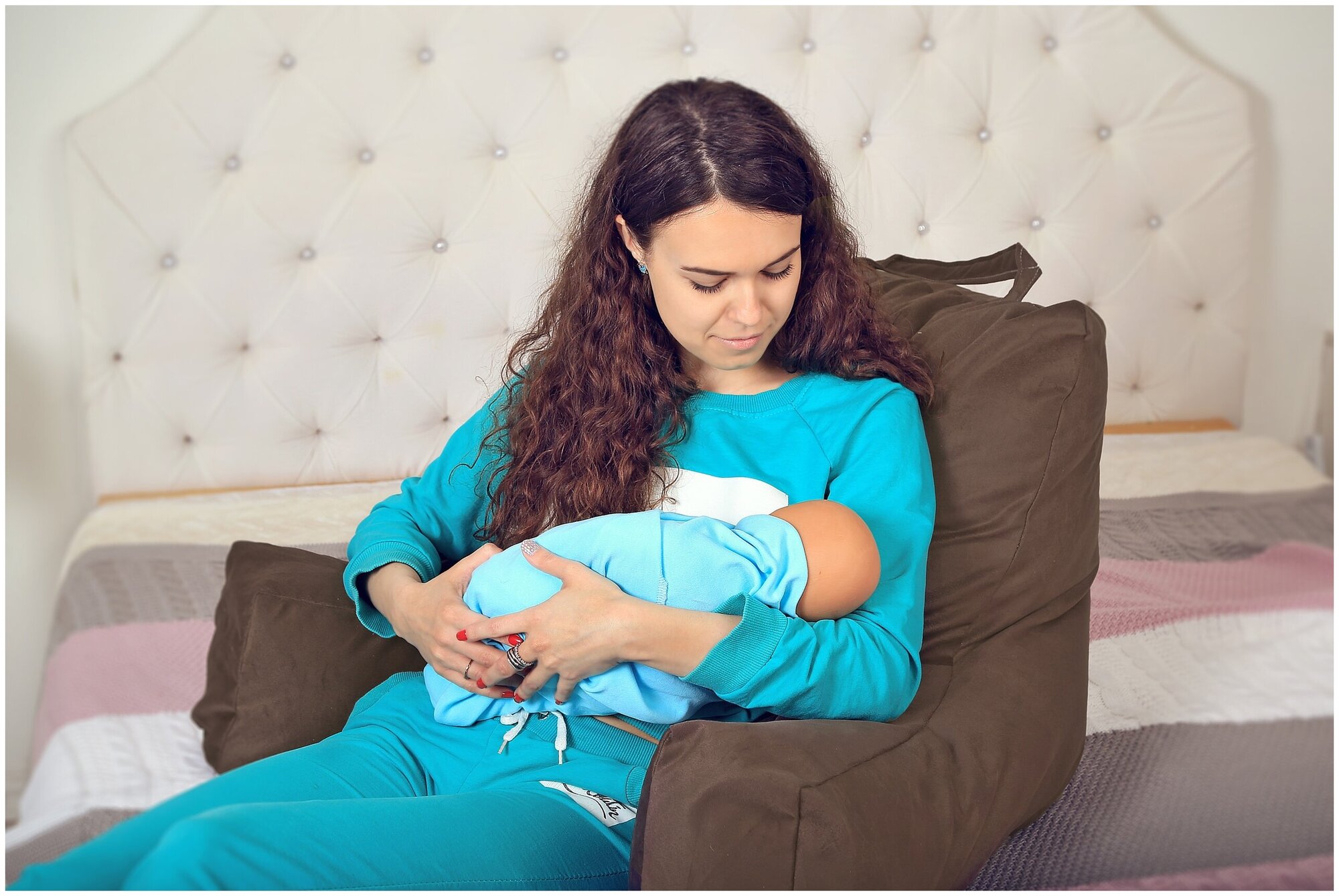 Кресло-подушка бирюзовая с подлокотниками из велюра
