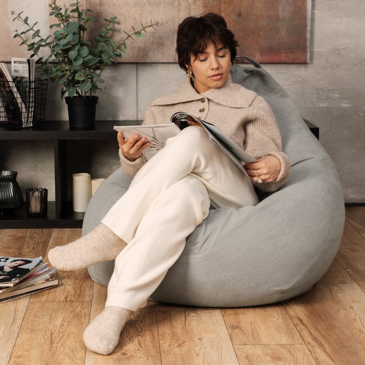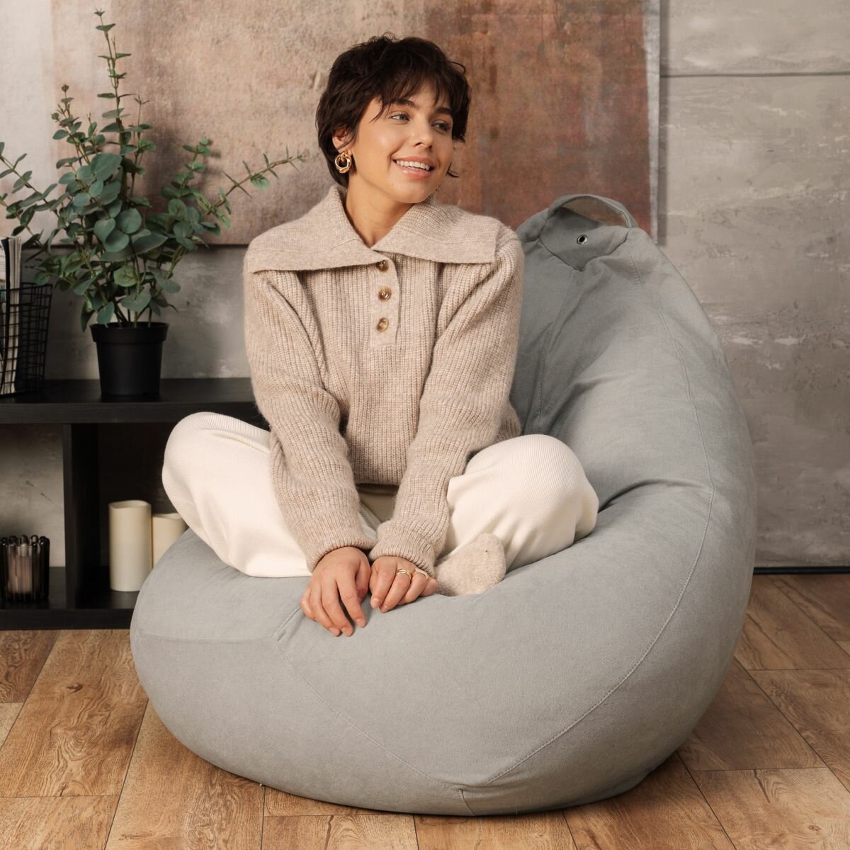 Купить F78 Кресло мешок XXXL СТАНДАРТ+ Светло-Серый 3XL Велюр