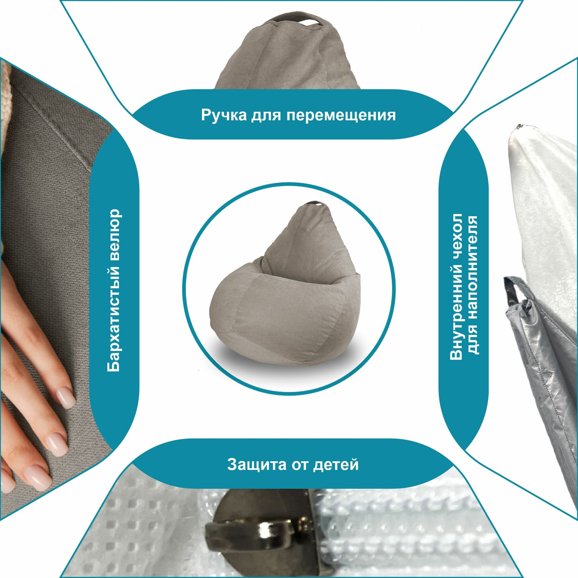 СохранитьF78 Кресло мешок XXXXL комфорт Светло-Серый 4XL Велюр интересное: