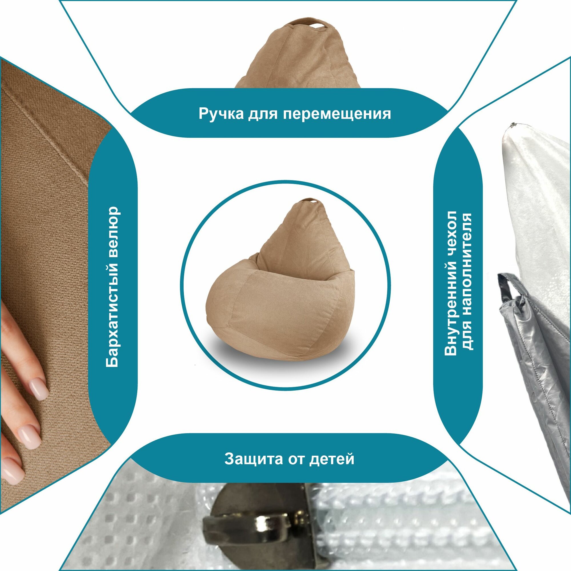F78 Кресло мешок XXXL СТАНДАРТ+ Бежевый 3XL Велюр