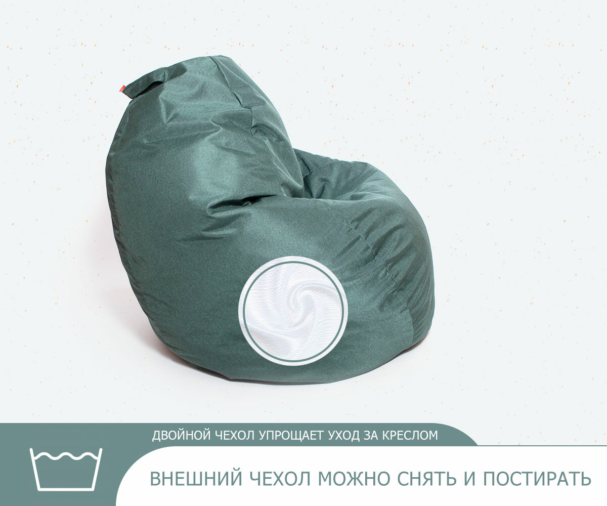 Кресло-мешок игровое XXXXXL WOWPUFF "Макси", рогожка малахит, съемный чехол