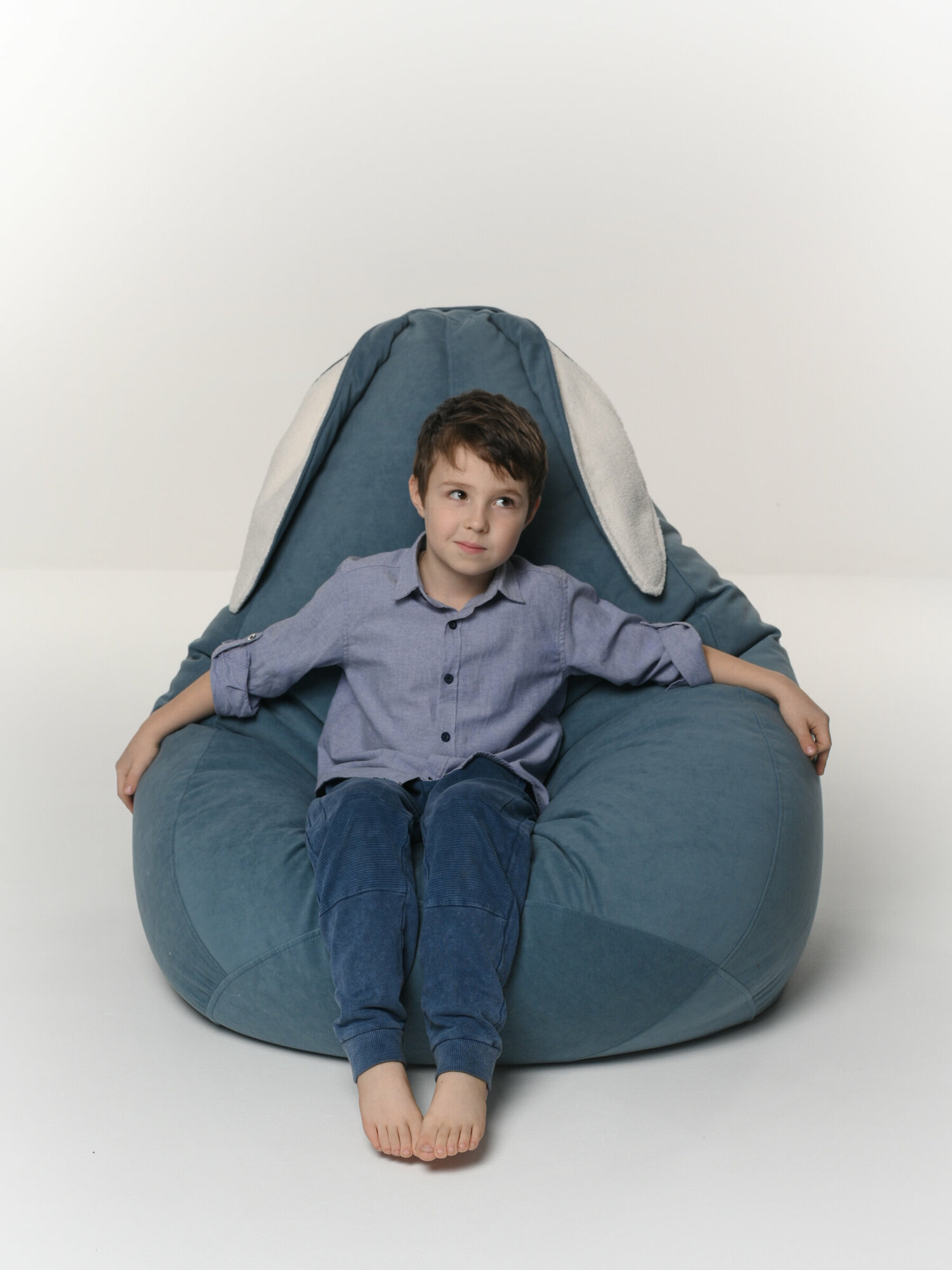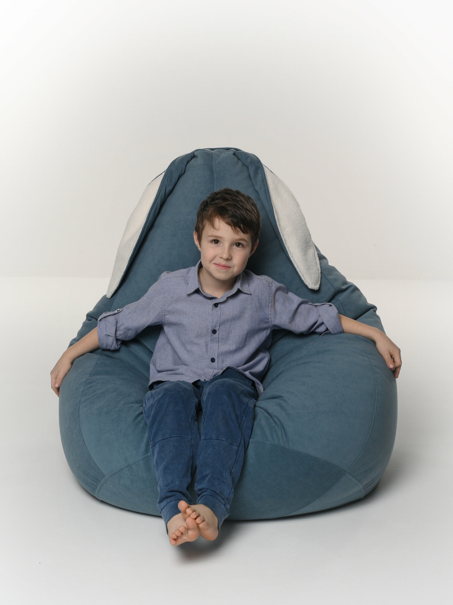 Кресло мешок груша XXL с ушками голубой