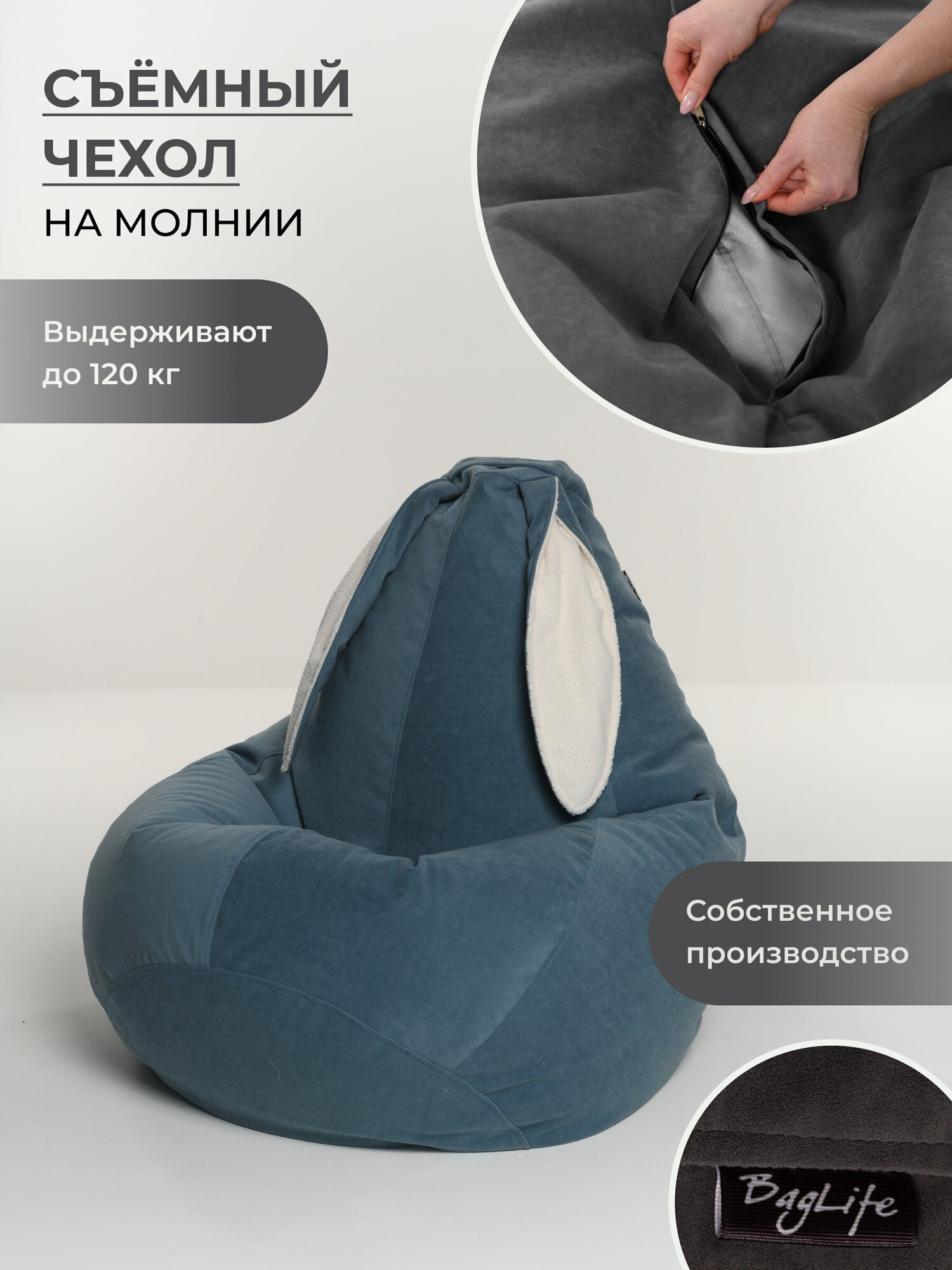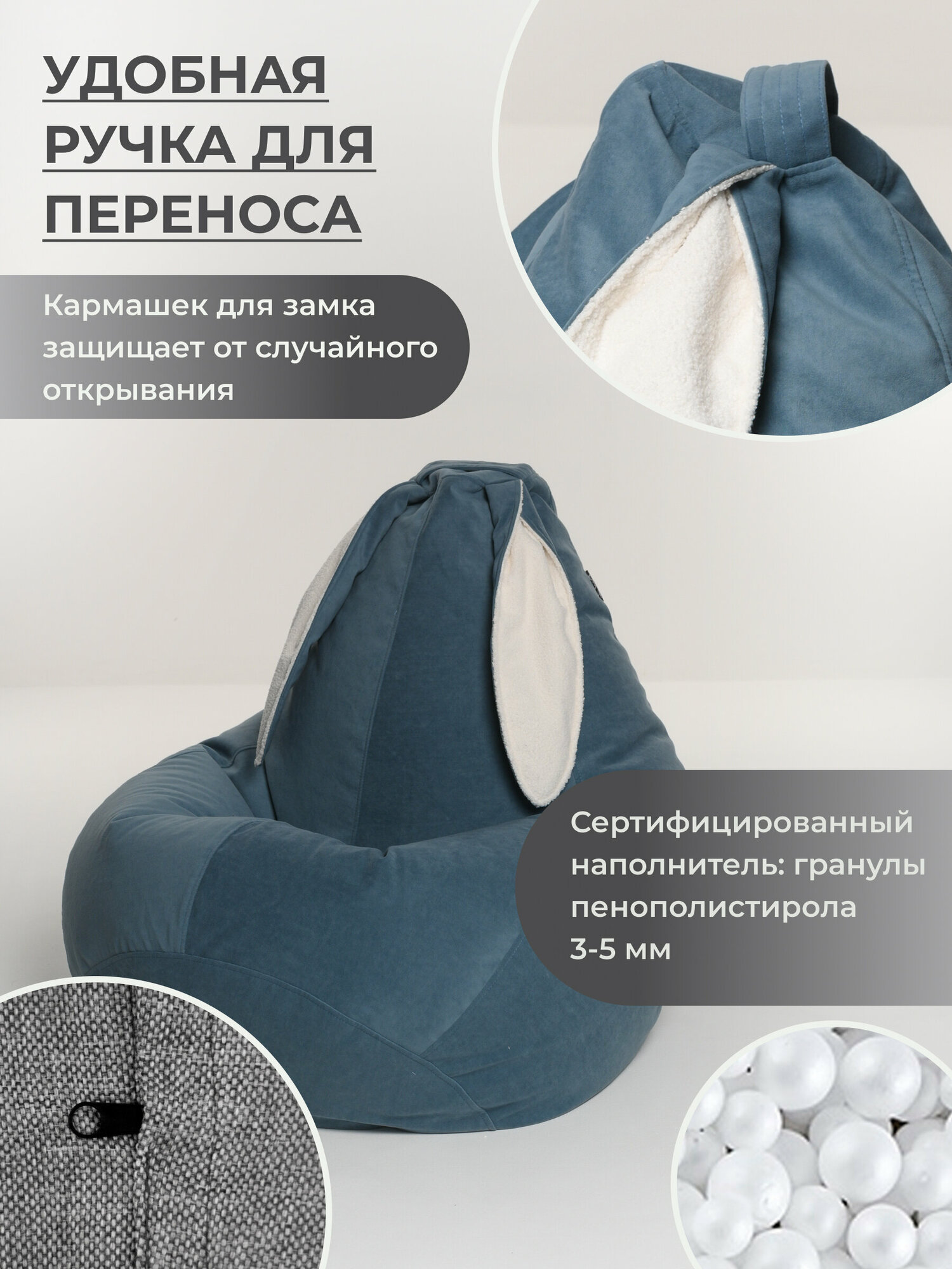 Кресло мешок груша XXL с ушками светло-синий интересное: