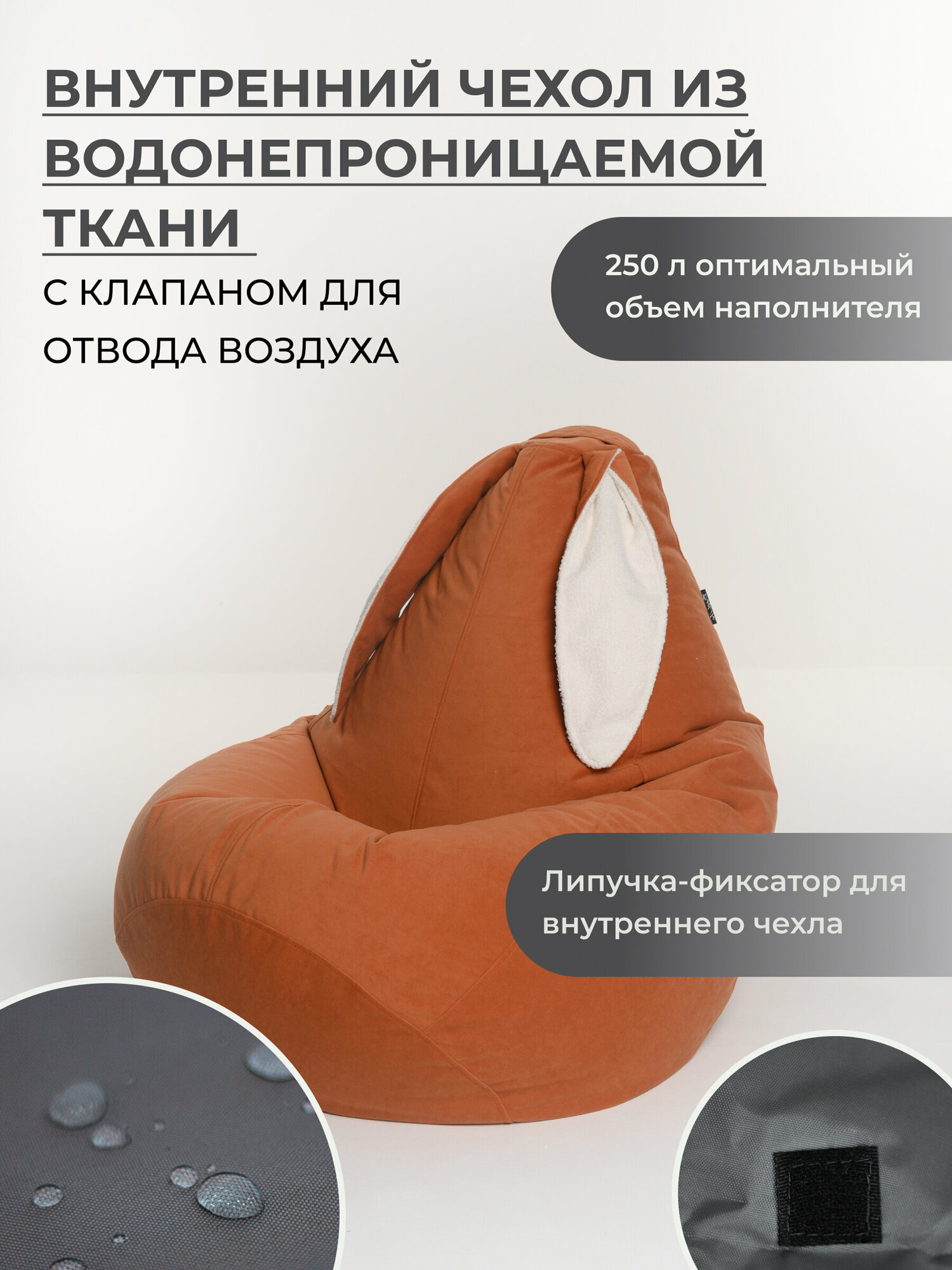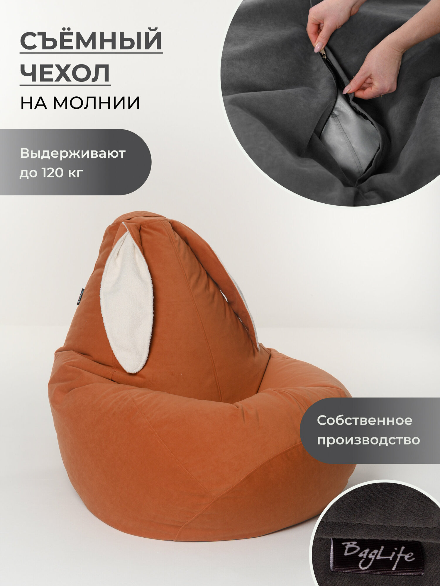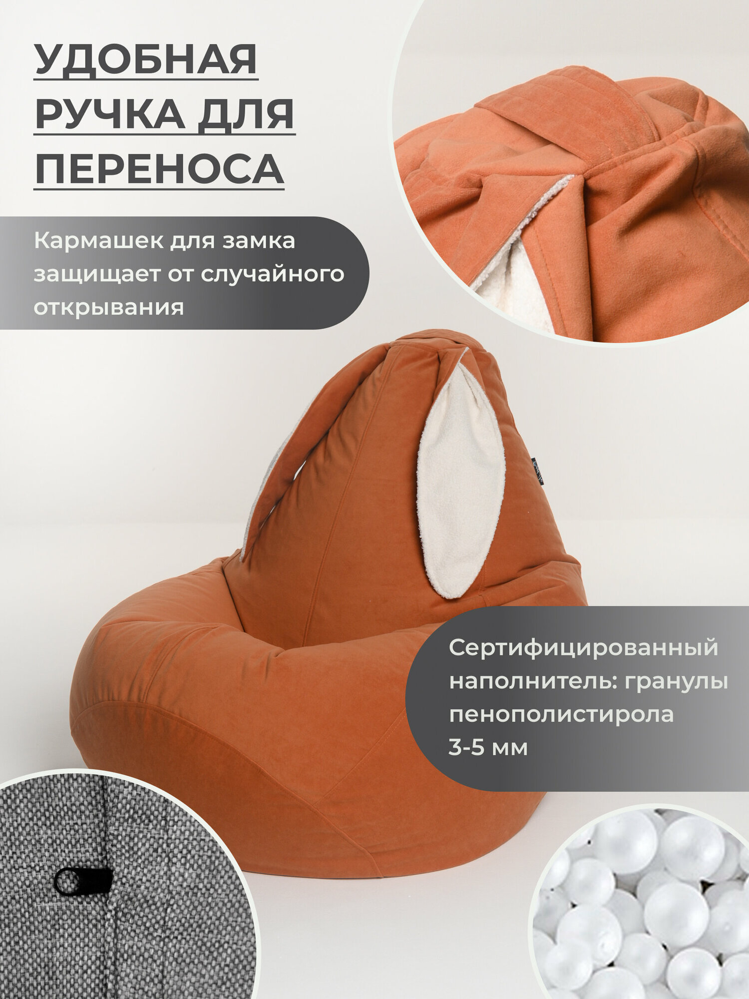 Кресло мешок груша XXL с ушками оранжевый интересное: