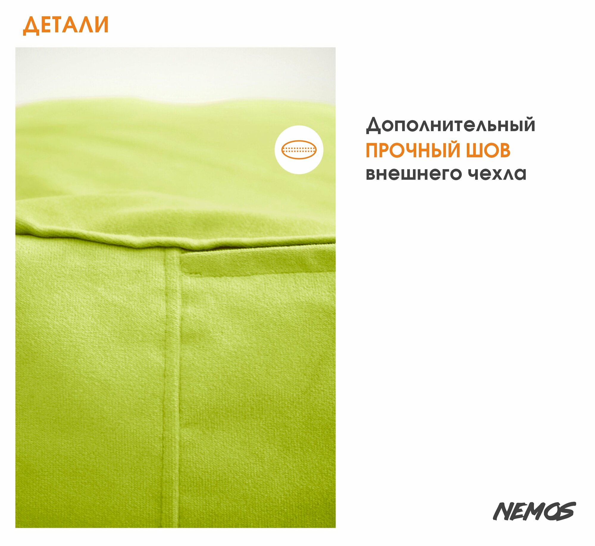 Кресло-мешок огромный , большой пуфик из натурального велюра премиум качества Nemos. размера XXL, фисташковый