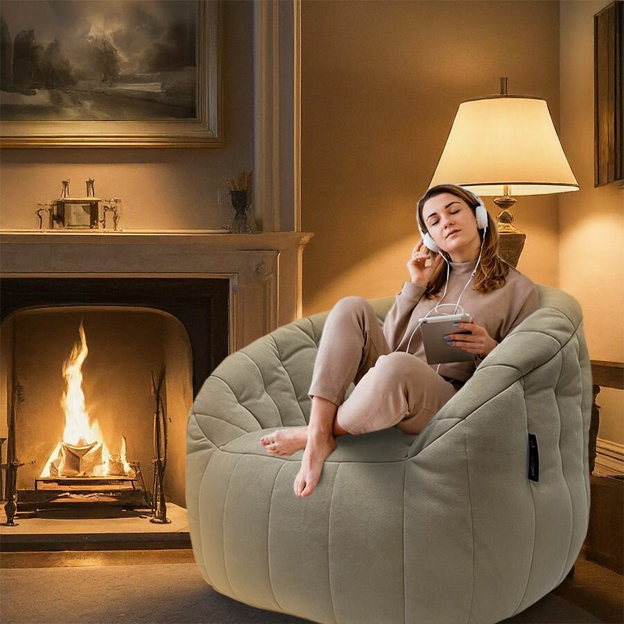 Бескаркасное дизайнерское кресло для отдыха aLounge - Butterfly Sofa - Tundra Spring (велюр, светло-серый) - лаунж мебель в гостиную, спальню, детскую, офис, на балкон