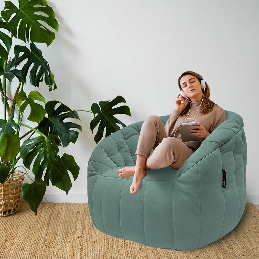 Купить Бескаркасное дизайнерское кресло для отдыха aLounge - Butterfly Sofa - Pepper Mint (велюр, мятный) - лаунж мебель в гостиную, спальню, детскую, офис, на балкон