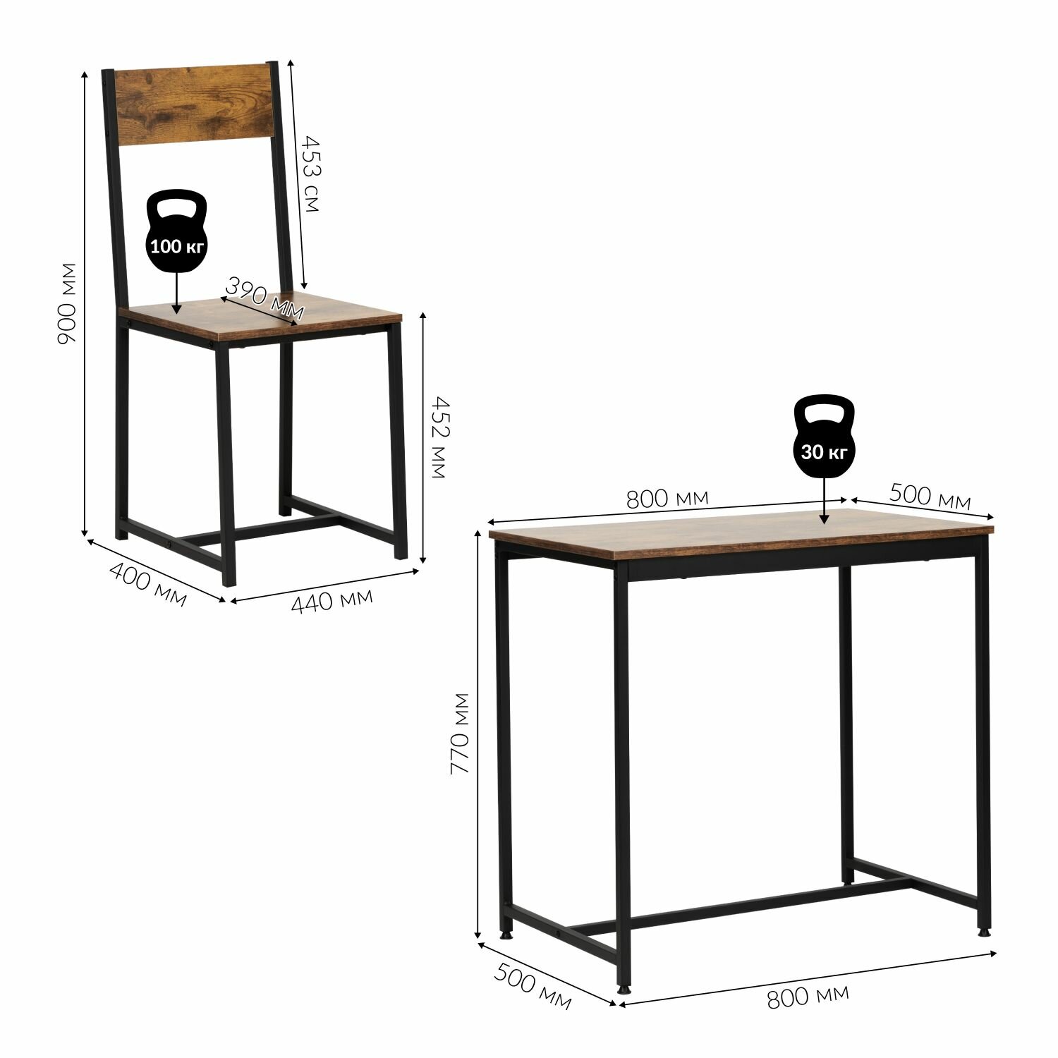 | Габариты | Стол: 800х500х770 Стул: 440х400х900 |