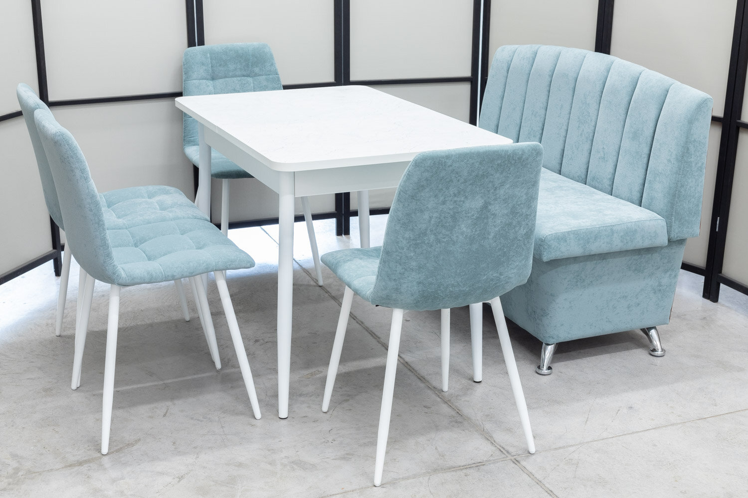 Обеденная группа Альт-3 Кватро, стол белый Ост термопластик, 110(140)х70 см, обивка дивана антивандальная, моющаяся, антикоготь, цвет ментол интересное: