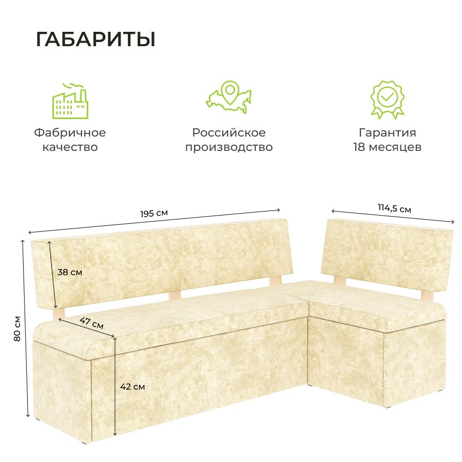 Кухонный уголок со спальным местом Монреаль, BONMEBEL Бежевый, 195х114,5х80 см интересное: